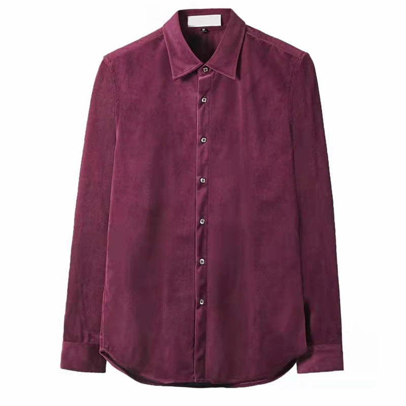 进口天鹅绒丝绒纯色男士长袖衬衫