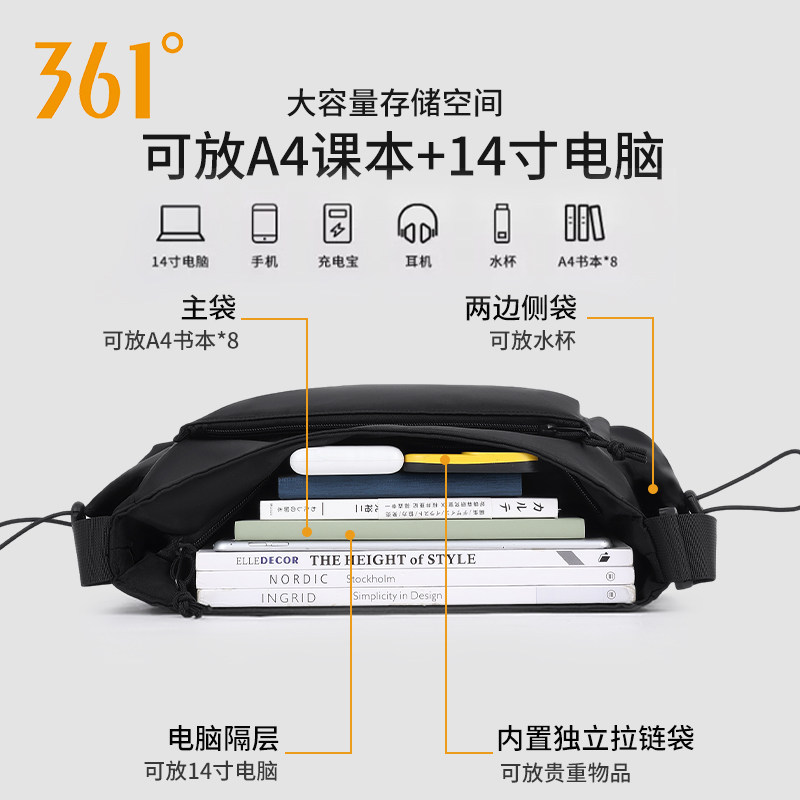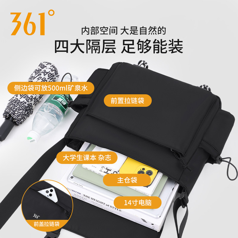 361°男士斜挎包大容量2025新款通勤便携学生电脑单肩包女邮差包