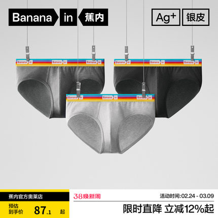 3件|蕉内银皮301S男士三角内裤纯棉裆青少年抗菌大码透气四角裤