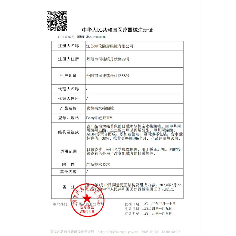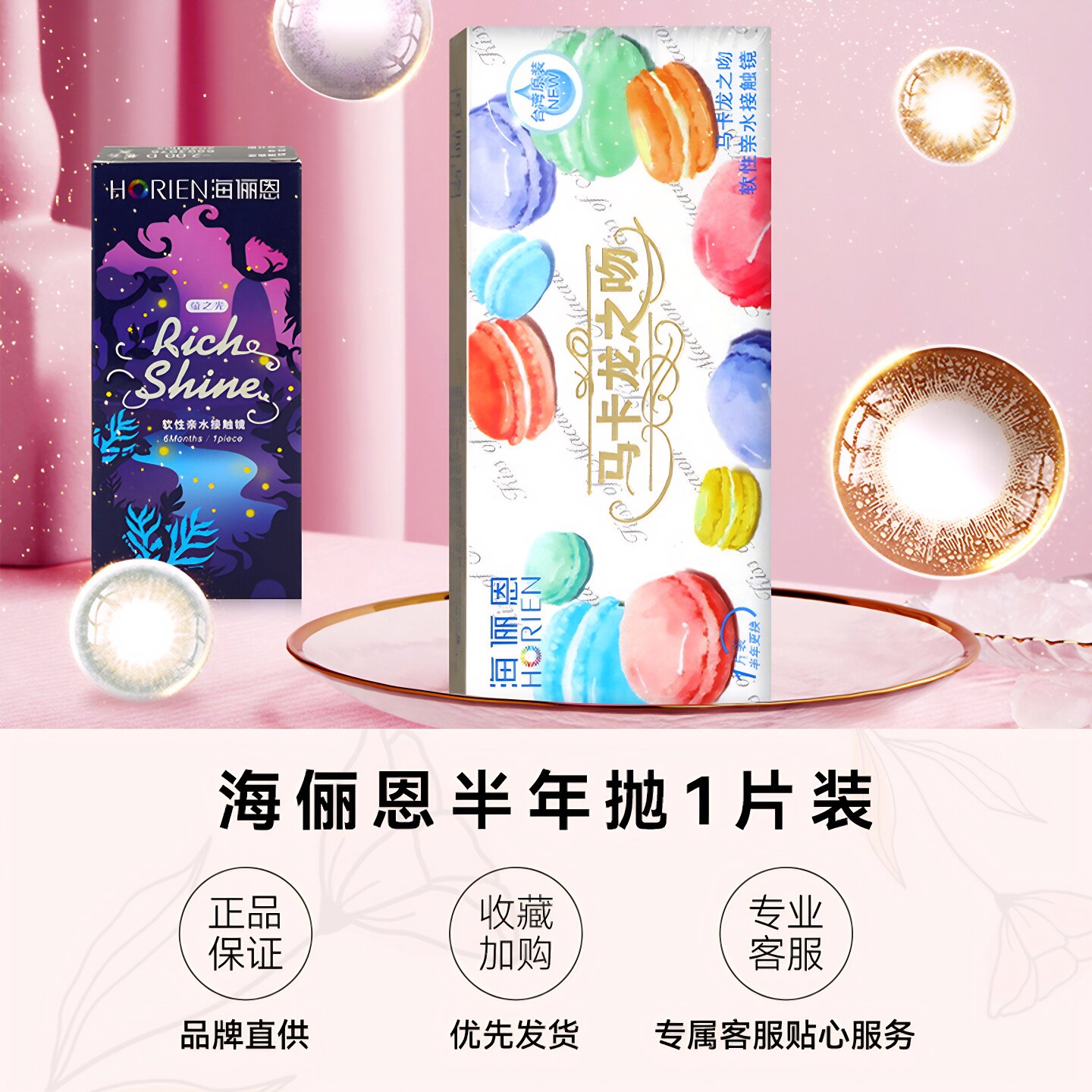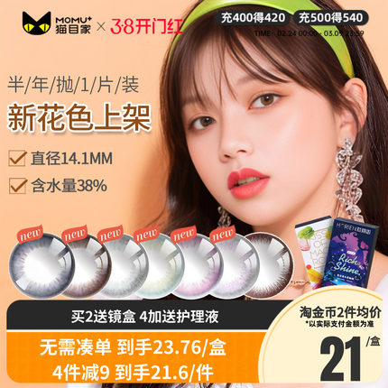 海俪恩美瞳半年抛盒1片装大小直径彩色隐形眼镜自然混血官方正品