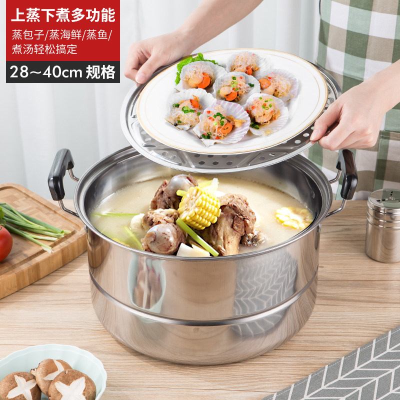 加厚不锈钢蒸锅二层商用汤锅双层28-40cm蒸馍蒸馒头电磁炉煤气灶
