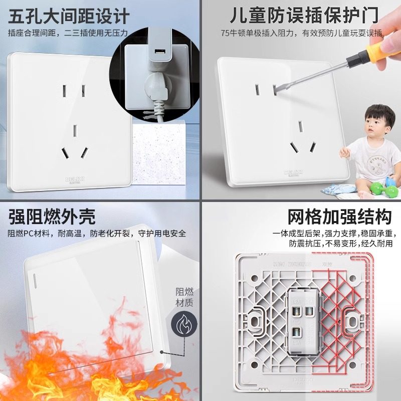 德力西官方旗舰开关插座面板多孔86型815电源一开五孔USB空调16A
