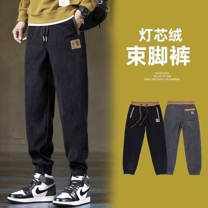 2024新款春秋冬款灯芯绒运动卫裤男裤加绒加厚休闲长裤子冬季