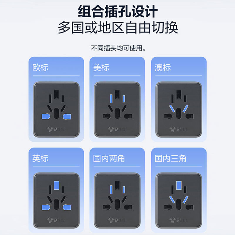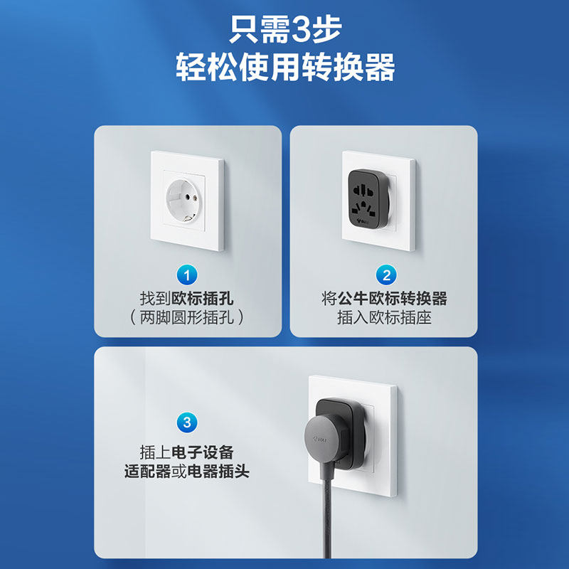 公牛转换插头欧标韩国欧洲万能转换器转接头圆孔二转三脚L11-L12