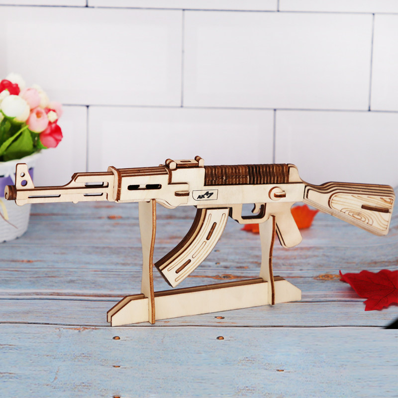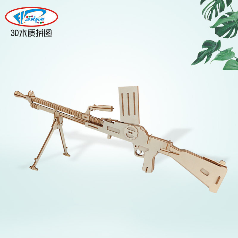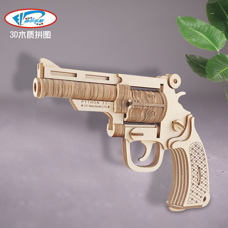 手枪冲锋枪木质3d立体拼图模型手工组装儿童益智玩具动脑男孩礼物