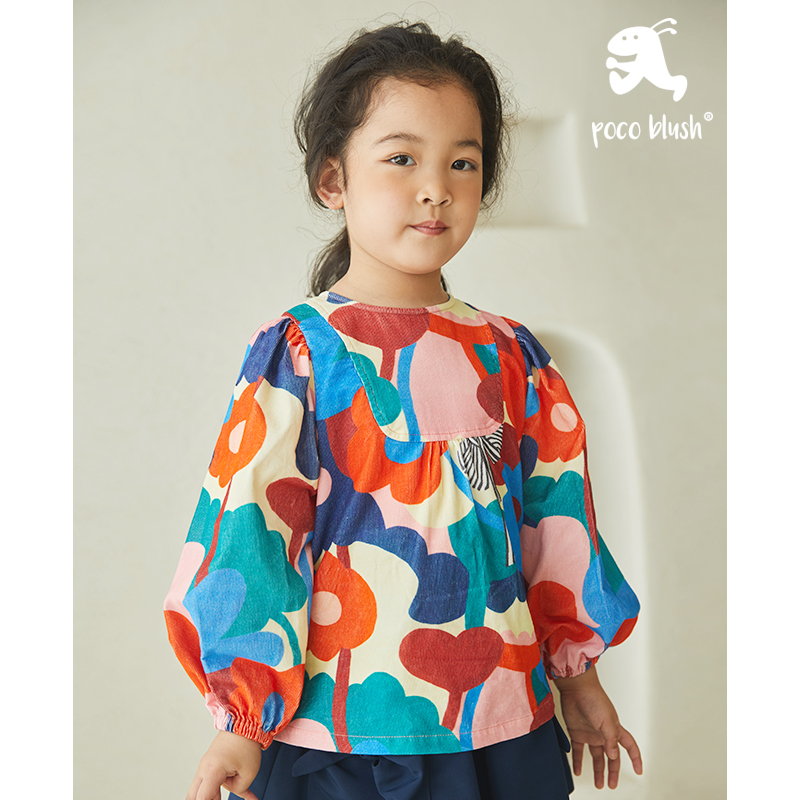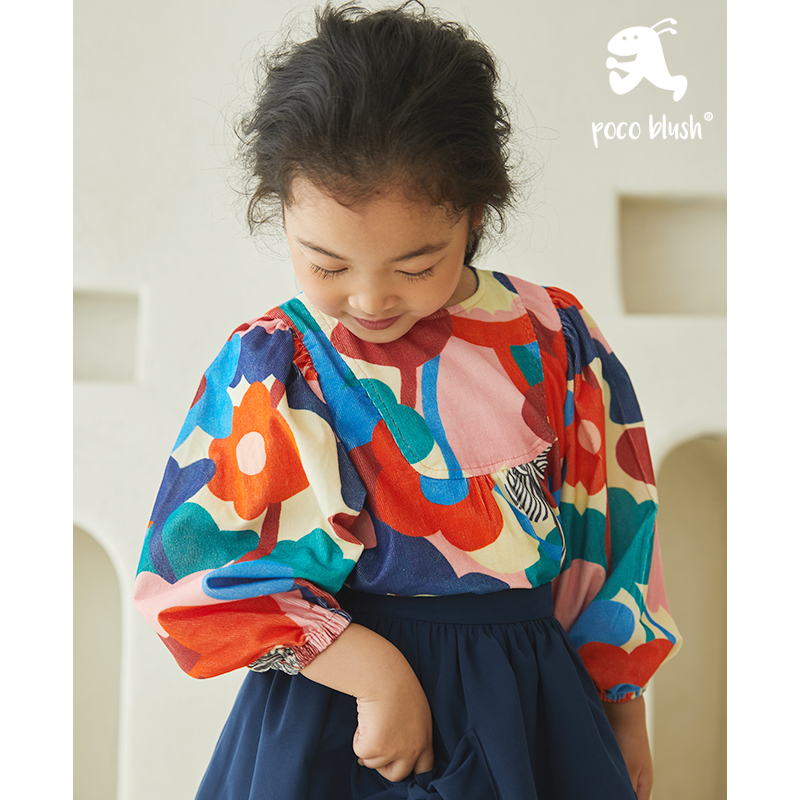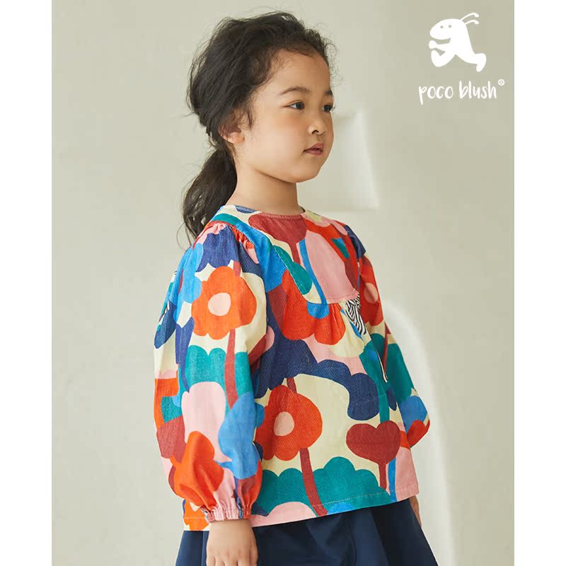 pocoblush原创设计尼斯湖系列春秋小女孩长袖纯棉女童泡泡袖衬衫