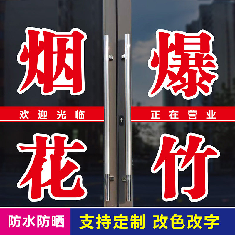 烟花爆竹广告贴纸商店玻璃门字贴烟酒超市户外户外防水防晒墙贴画