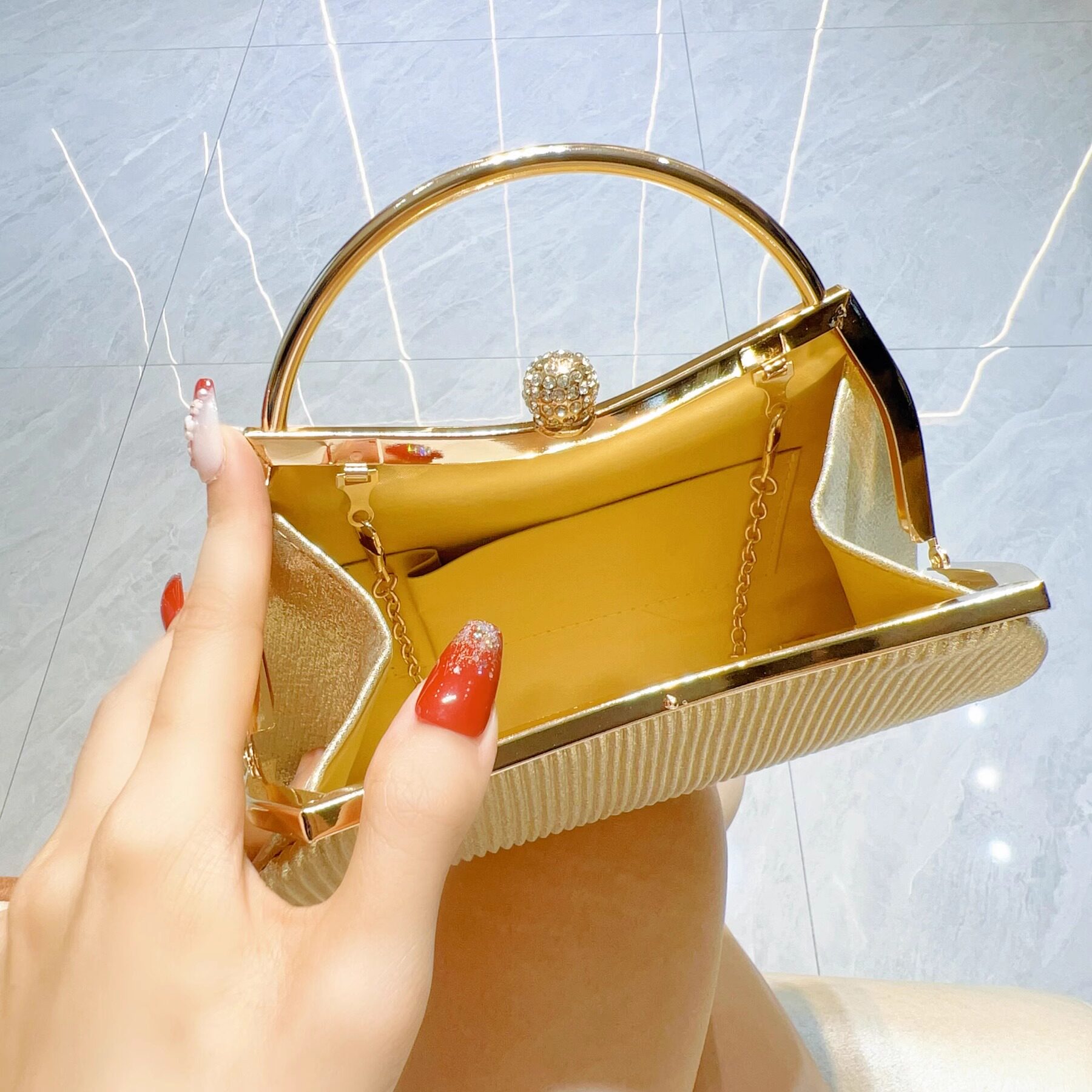 皱褶镶钻晚宴包KTV名媛