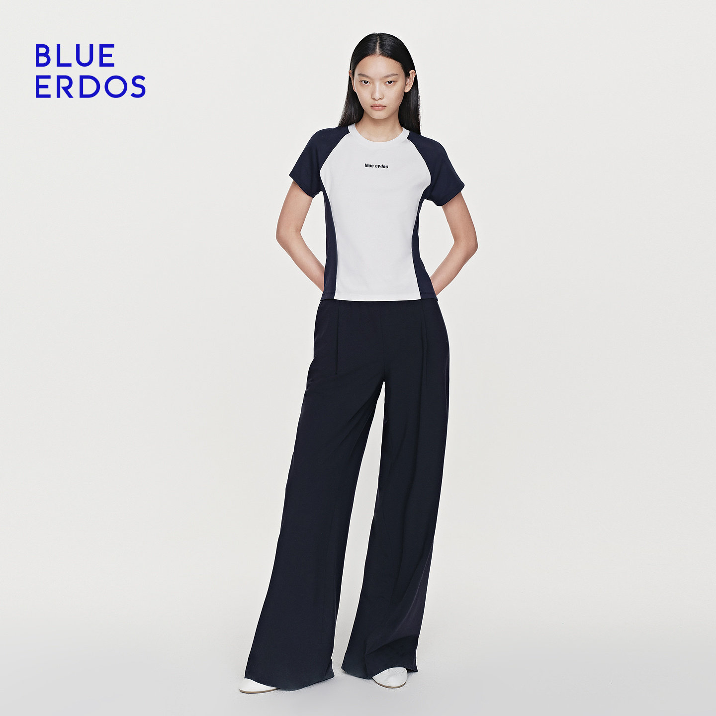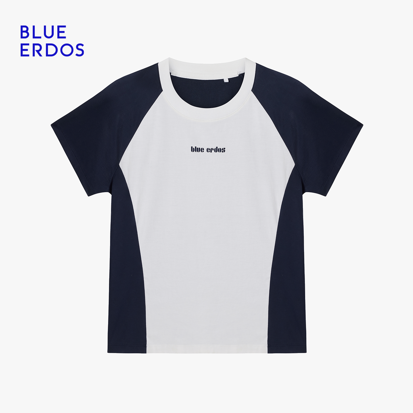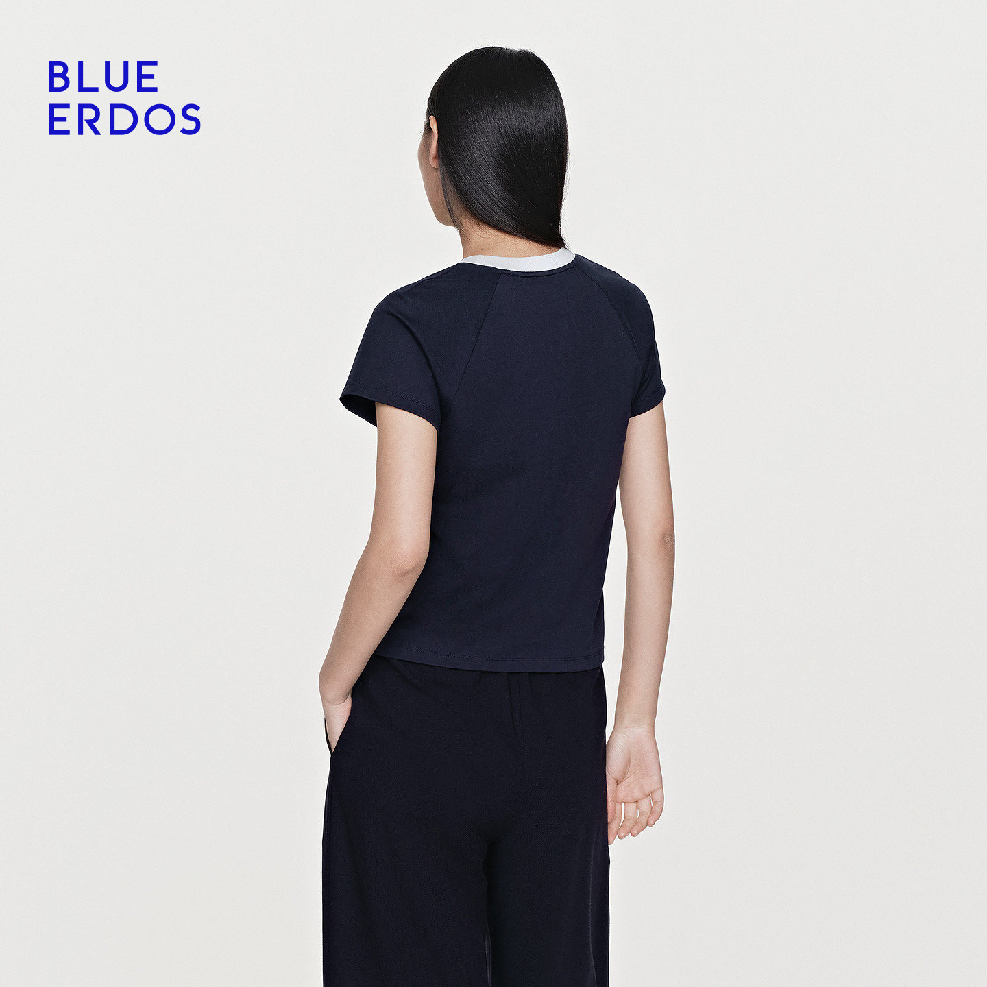 BLUE ERDOS26早春新品通勤百搭撞色连肩袖修身短袖T恤B2265F031