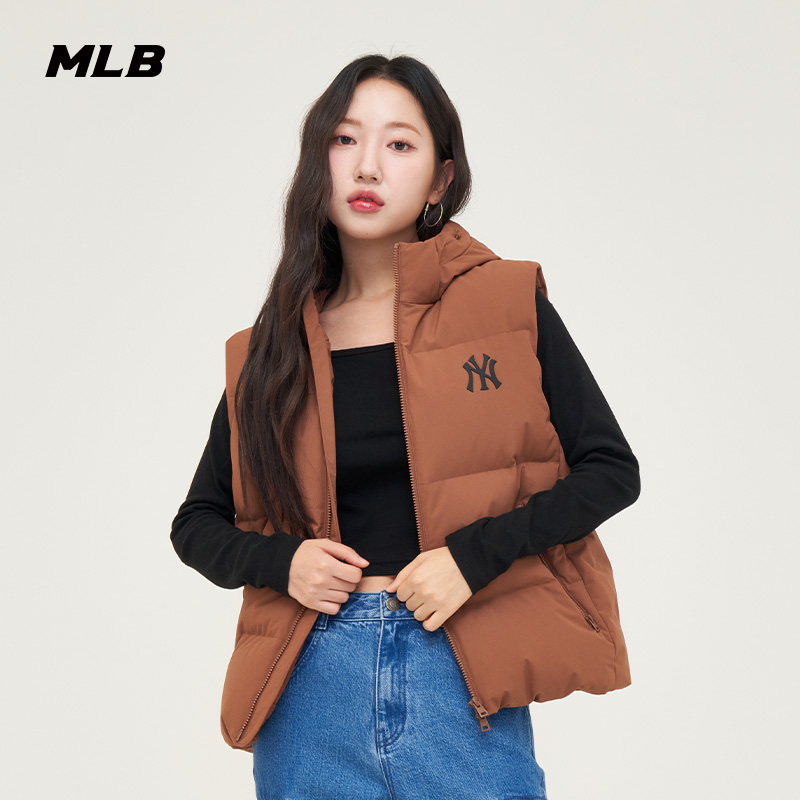 MLB官方 男女连帽加厚拉链时尚简约羽绒马甲背心24冬季DVB10