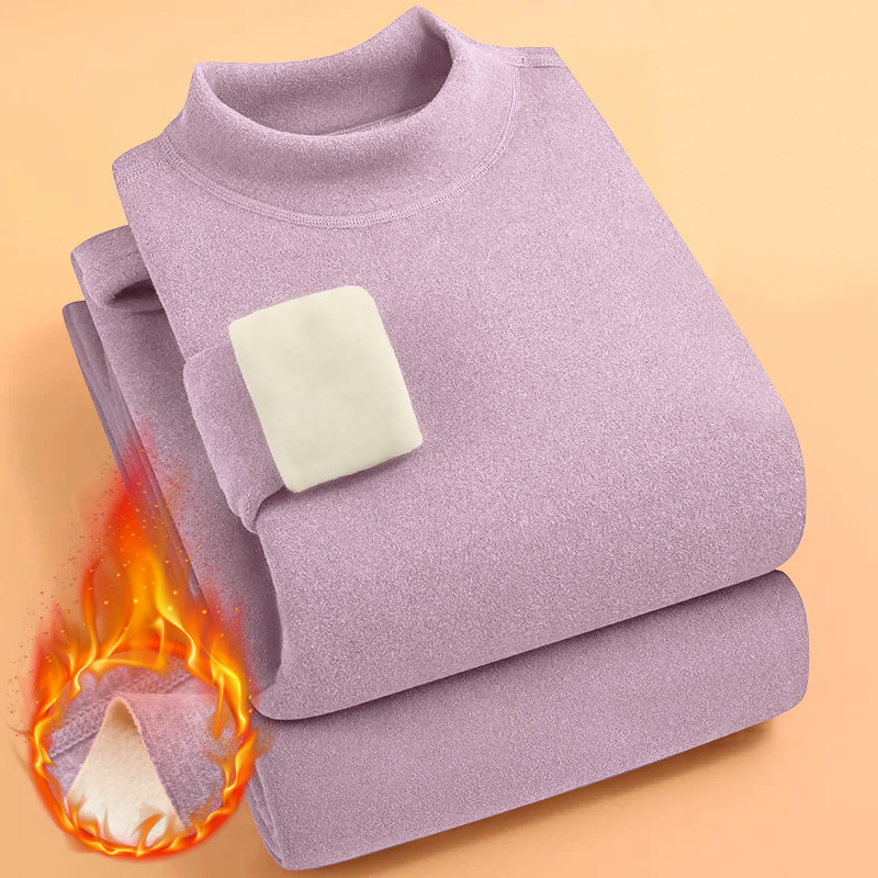 雅鹿款中高领保暖内衣女套装加厚加绒双面德绒中老年秋衣秋裤内穿