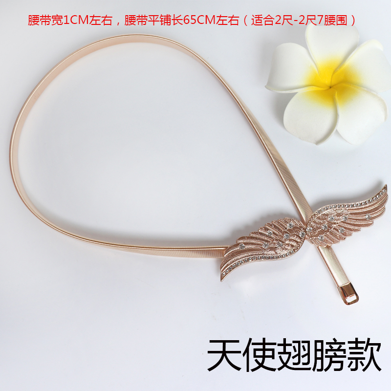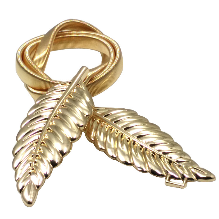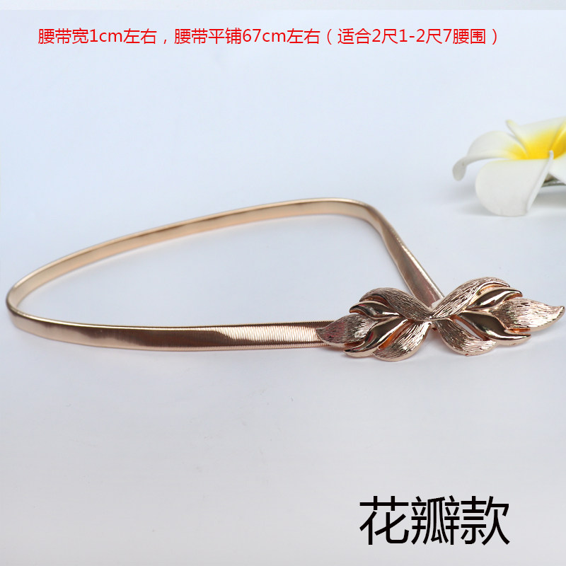 包邮新款树叶扣细腰链韩版百搭腰带金色弹力束腰连衣裙装饰松紧潮