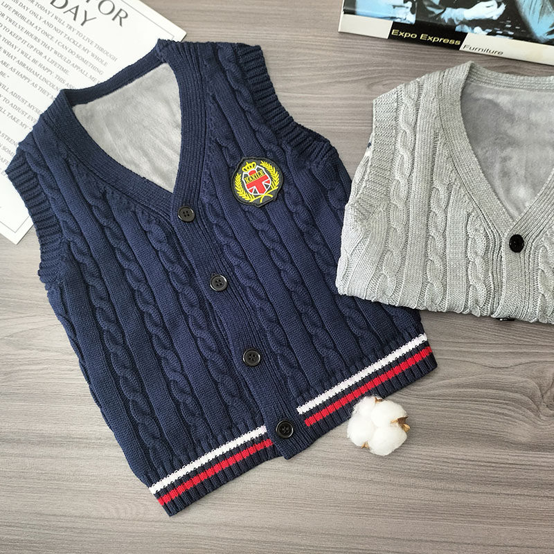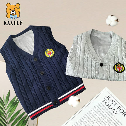 男童开衫毛衣马甲加绒女童背心宝宝儿童针织马夹坎肩