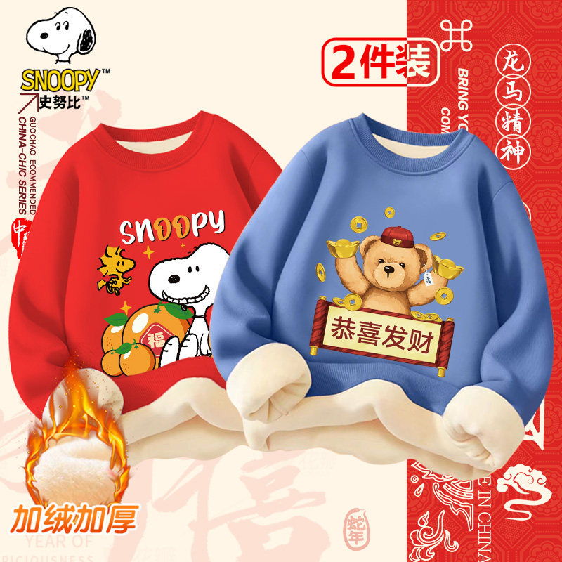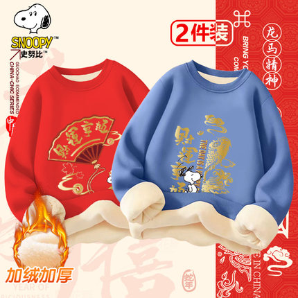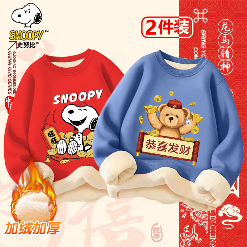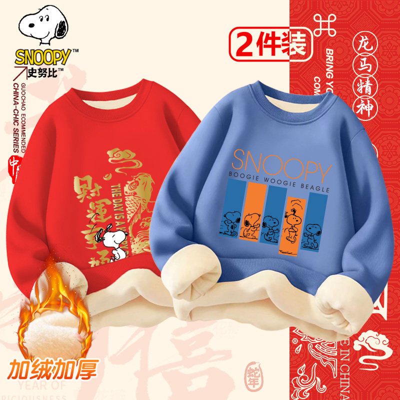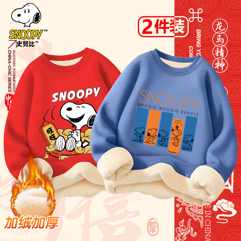 史努比儿童秋冬卫衣加绒马年加厚套头男童女童中大童圆领