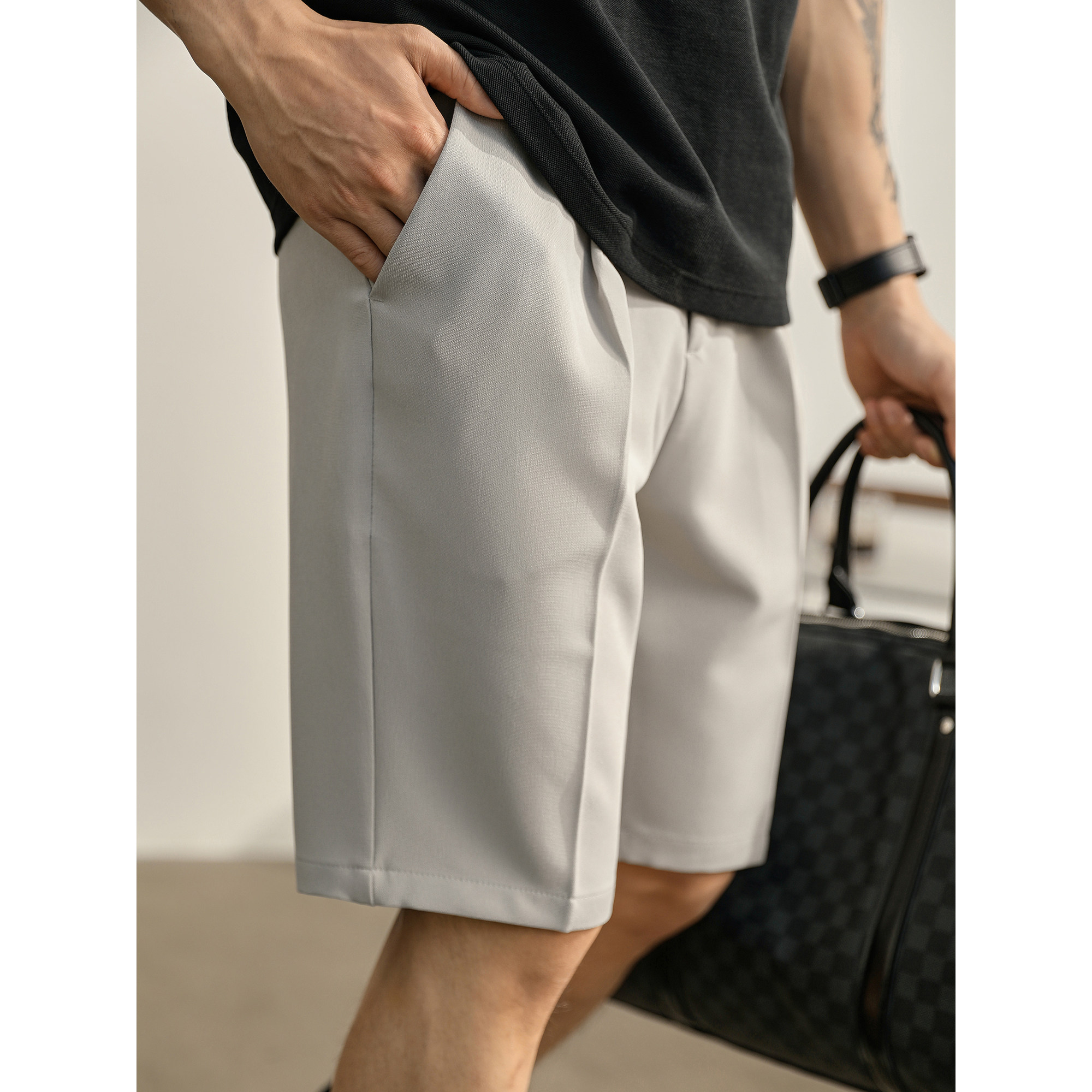 LUUD 男士轻奢风直筒小西裤夏季立体休闲短裤日常百搭抗皱中裤子
