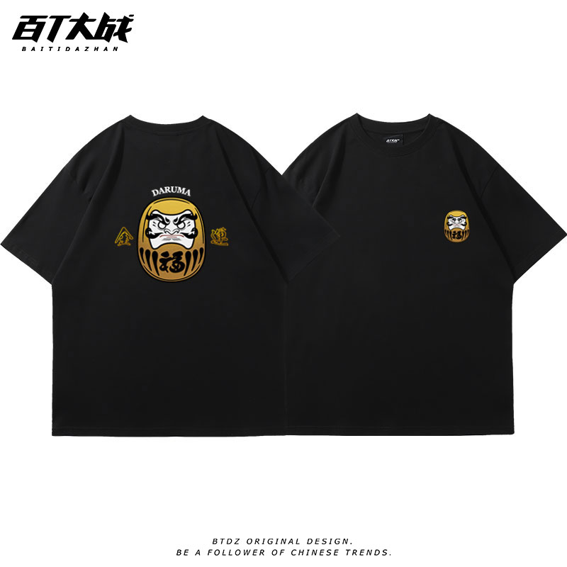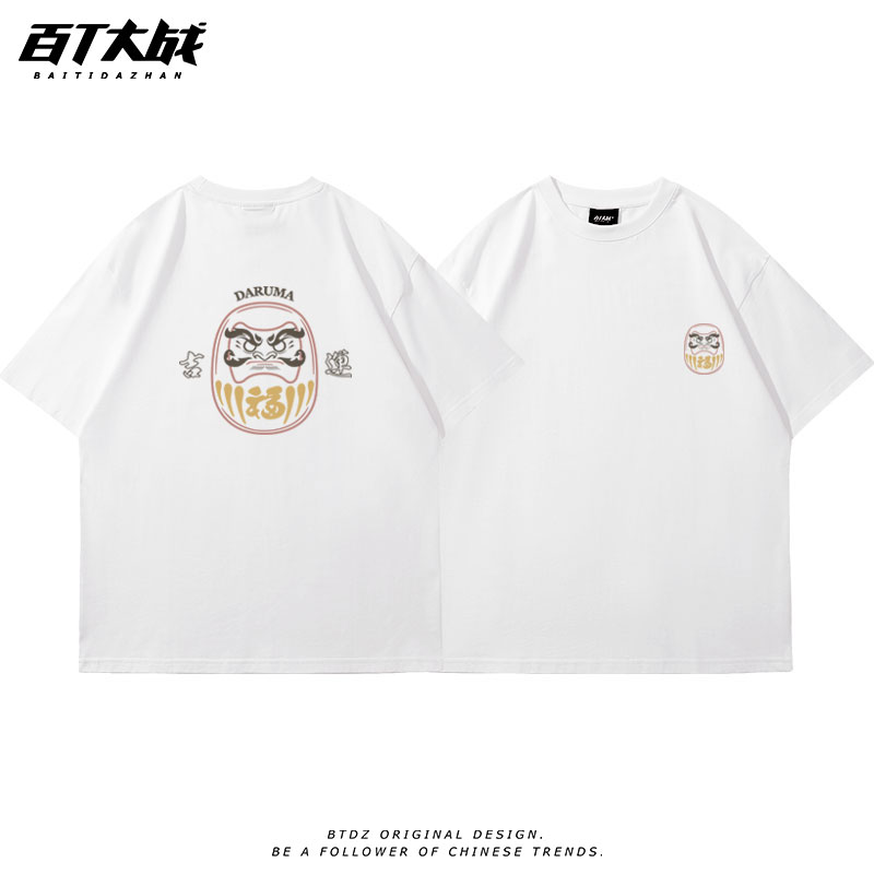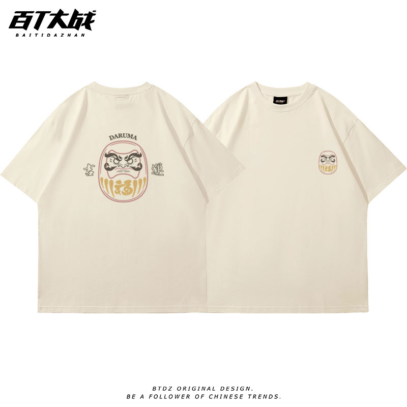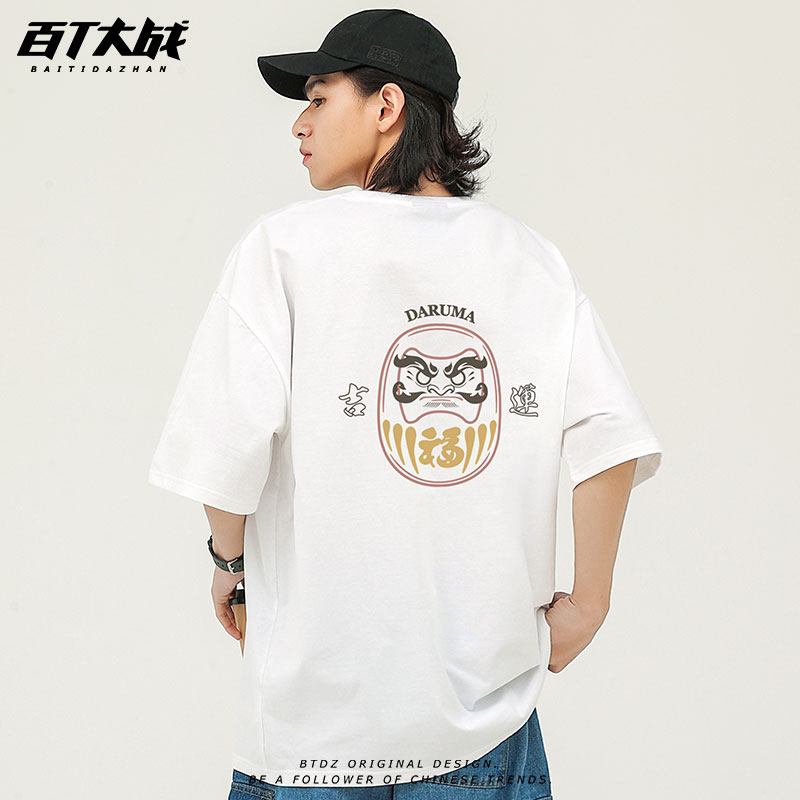 日系复古潮牌达摩简约日常休闲穿搭青少年宽松纯棉半袖t恤男短袖