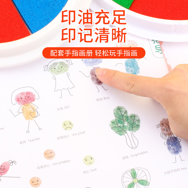 手指画印泥彩色脚印多色手印手账儿童幼儿园画画大号6色颜料画册