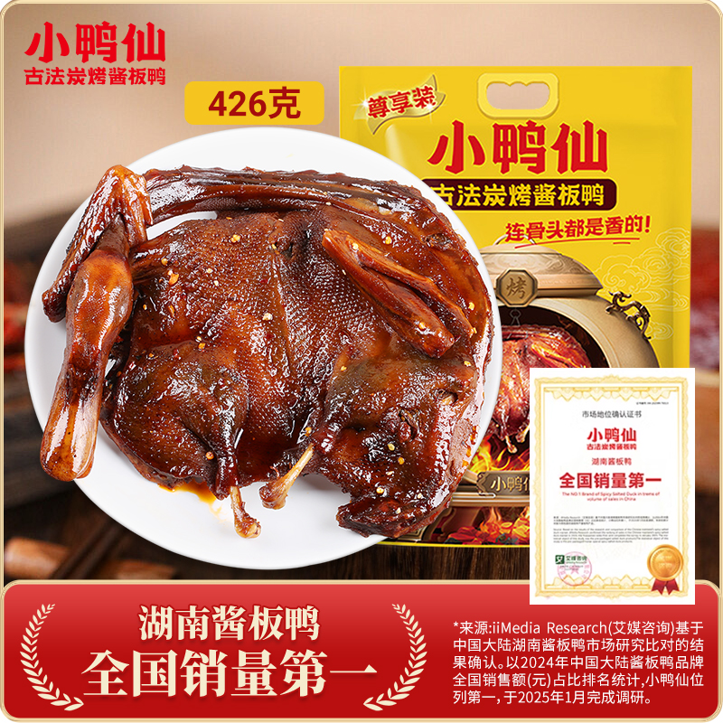 小鸭仙炭烤酱板鸭426g香辣山胡椒味湖南常德特产正宗风干板鸭零食