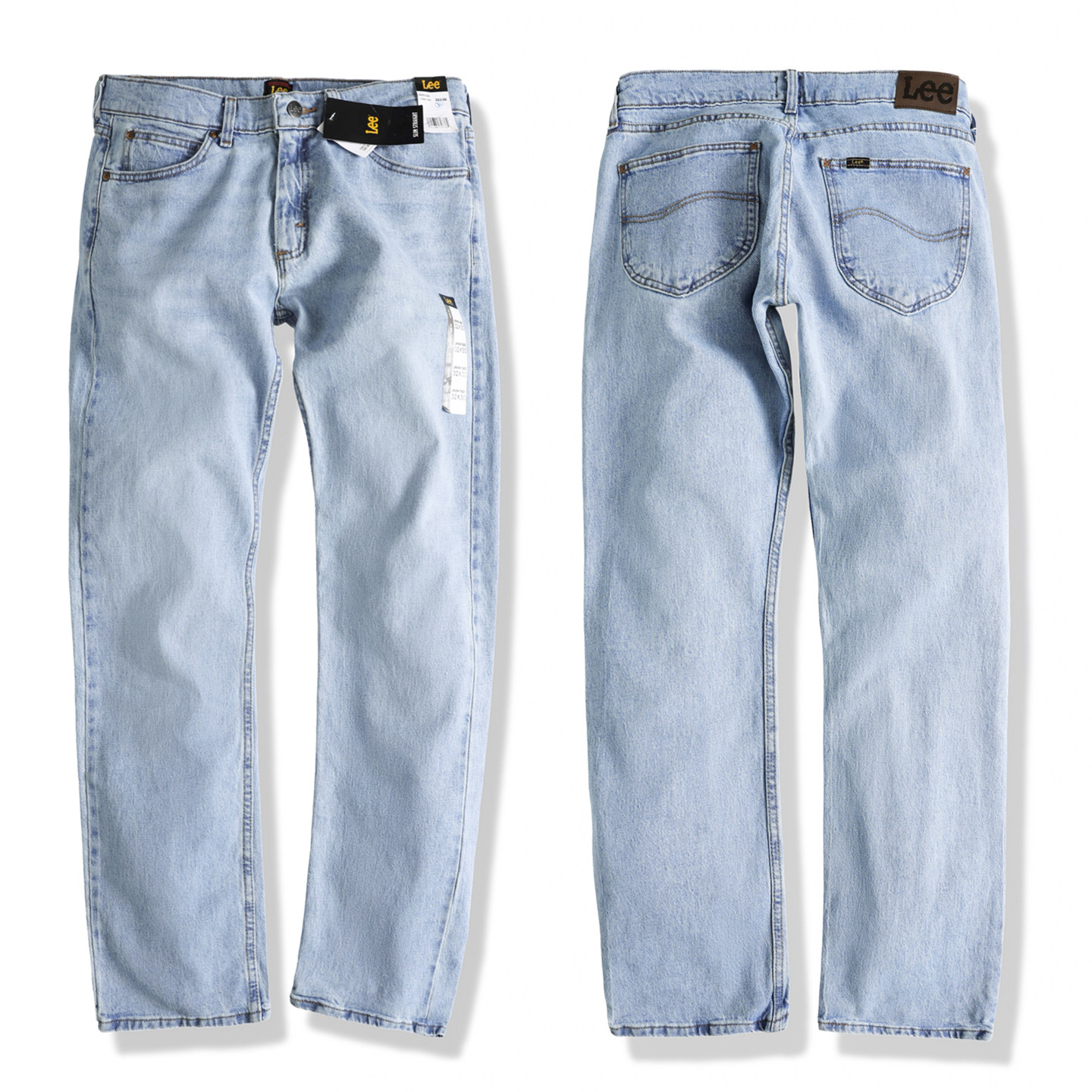 美国正品 Lee李浅蓝经典中腰直筒修身牛仔裤男士微弹耐磨休闲长裤