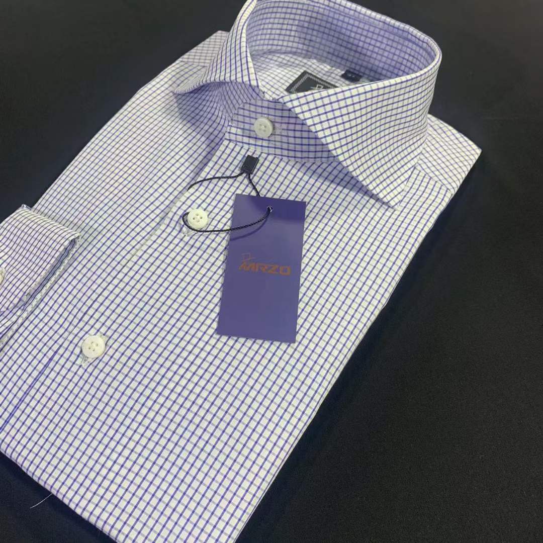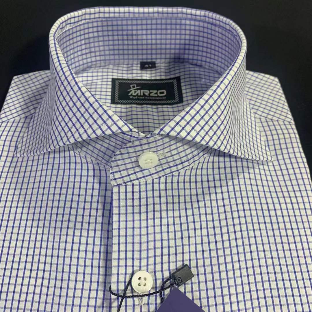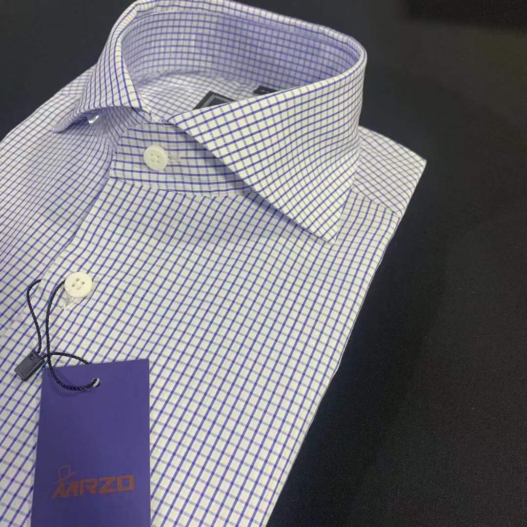 MRZO纯棉商务正装衬衫修身长袖休闲衫上班应酬格纹亚洲版衬衣
