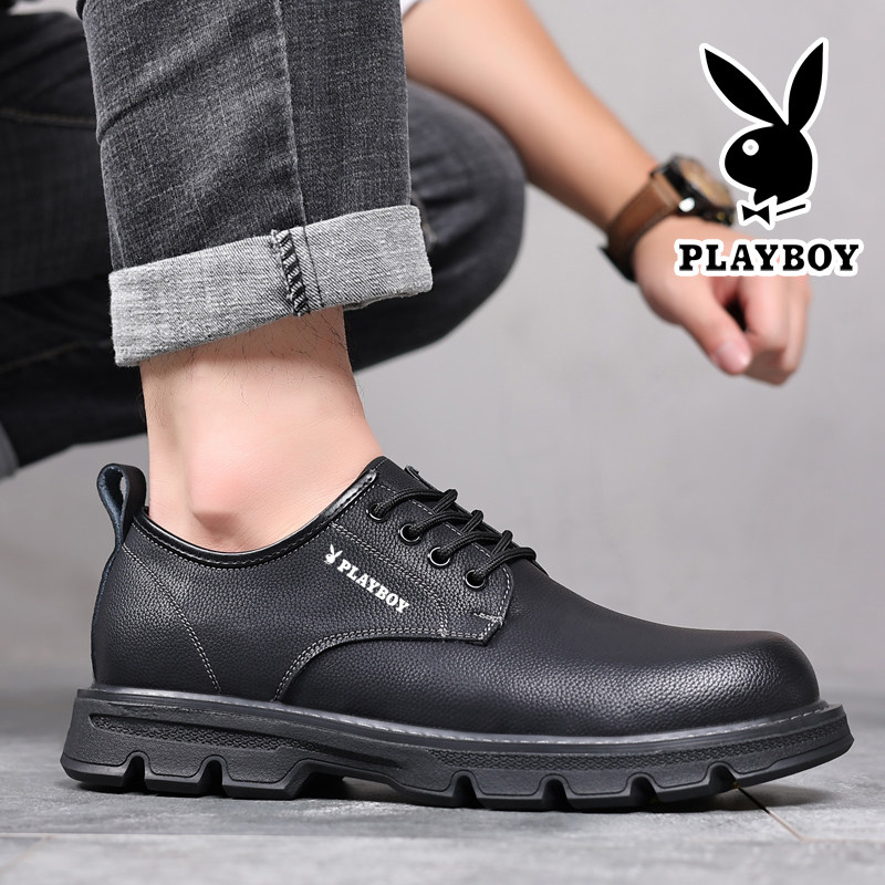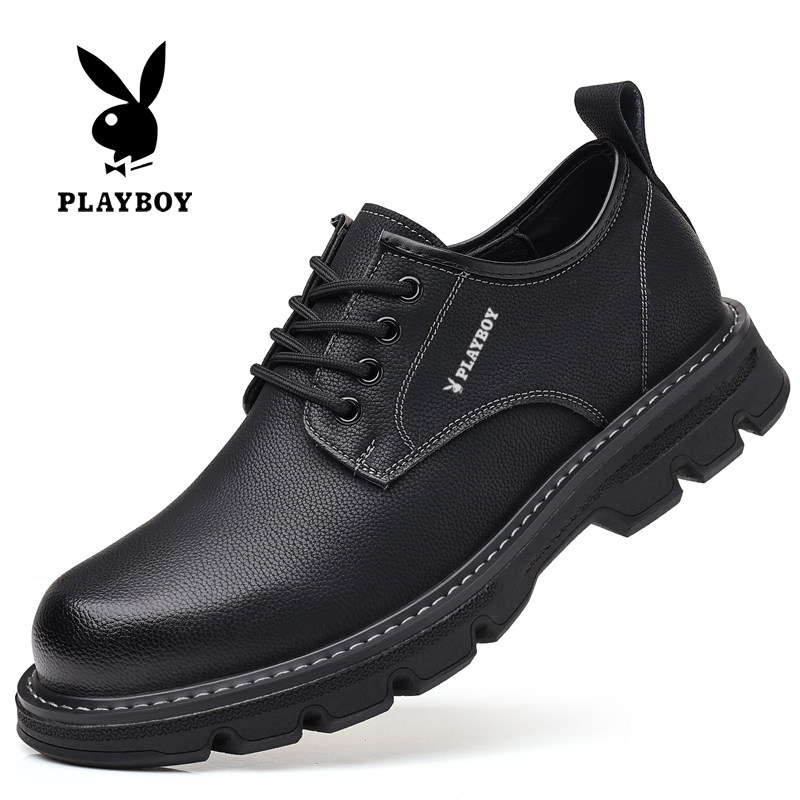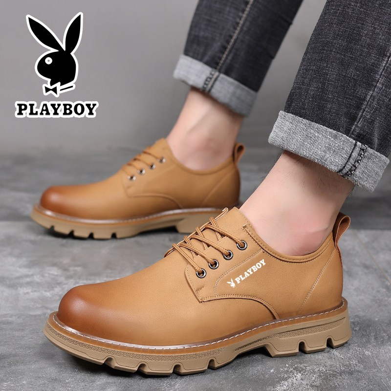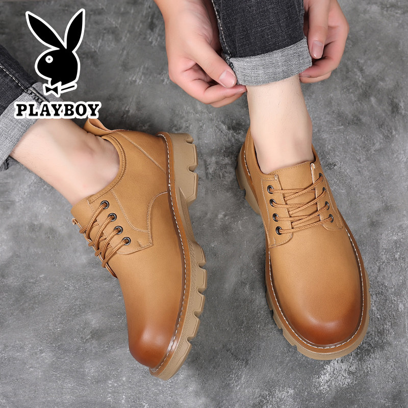 花花公子男鞋秋季2025新款潮流真皮休闲皮鞋男士马丁靴大头工装鞋