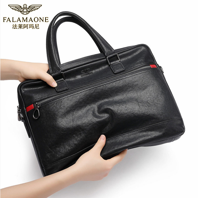 仅亏一天牛皮法莱阿玛尼正品牛皮男商务包单肩斜挎包轻奢真皮公文