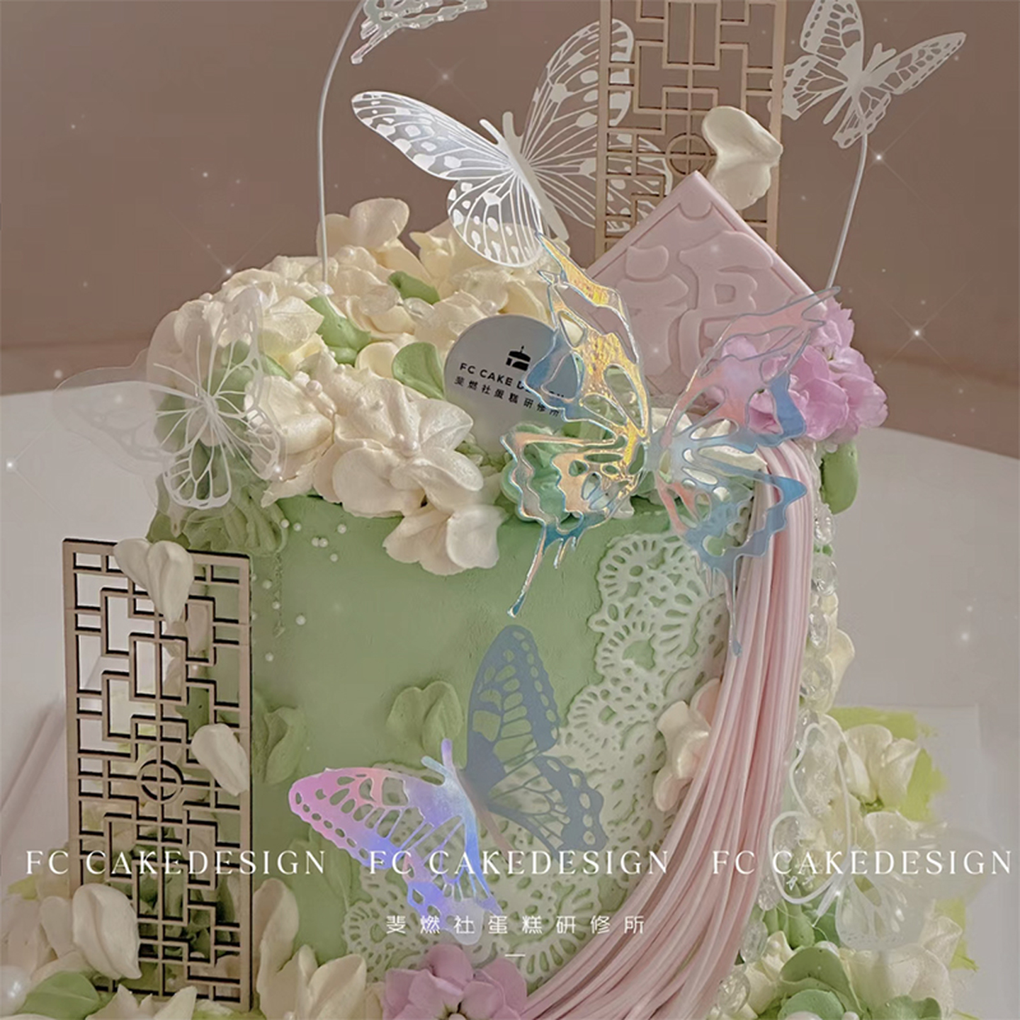 网红烘焙生日蛋糕装饰摆件国风新中式古风屏风唯美蝴蝶插卡插件