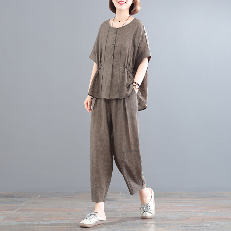 孔雀飞飞韩版宽松显瘦两件套纯色时尚时髦休闲套装女2025夏季新款