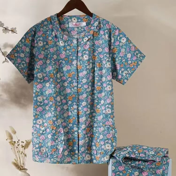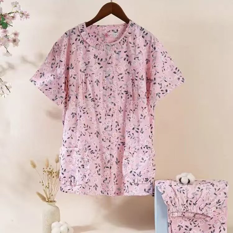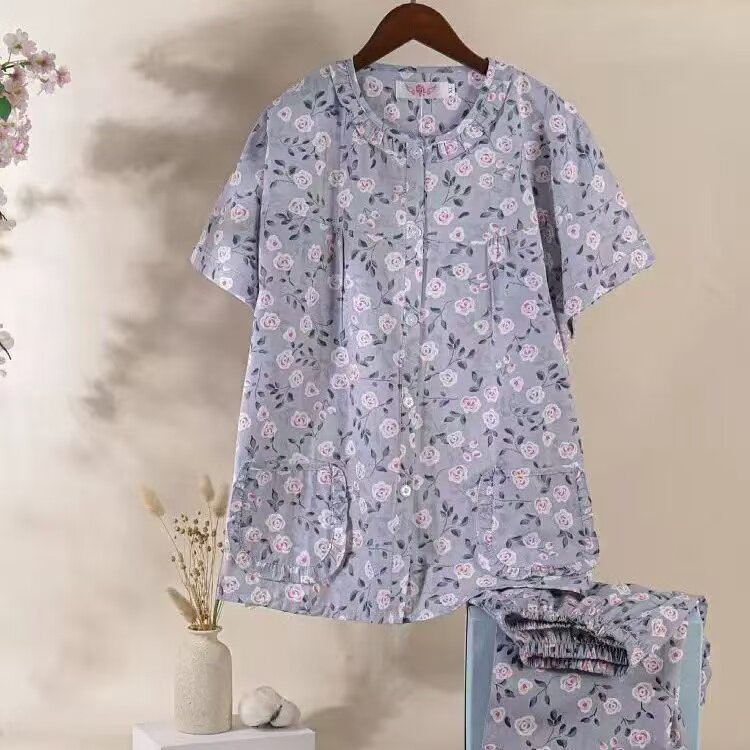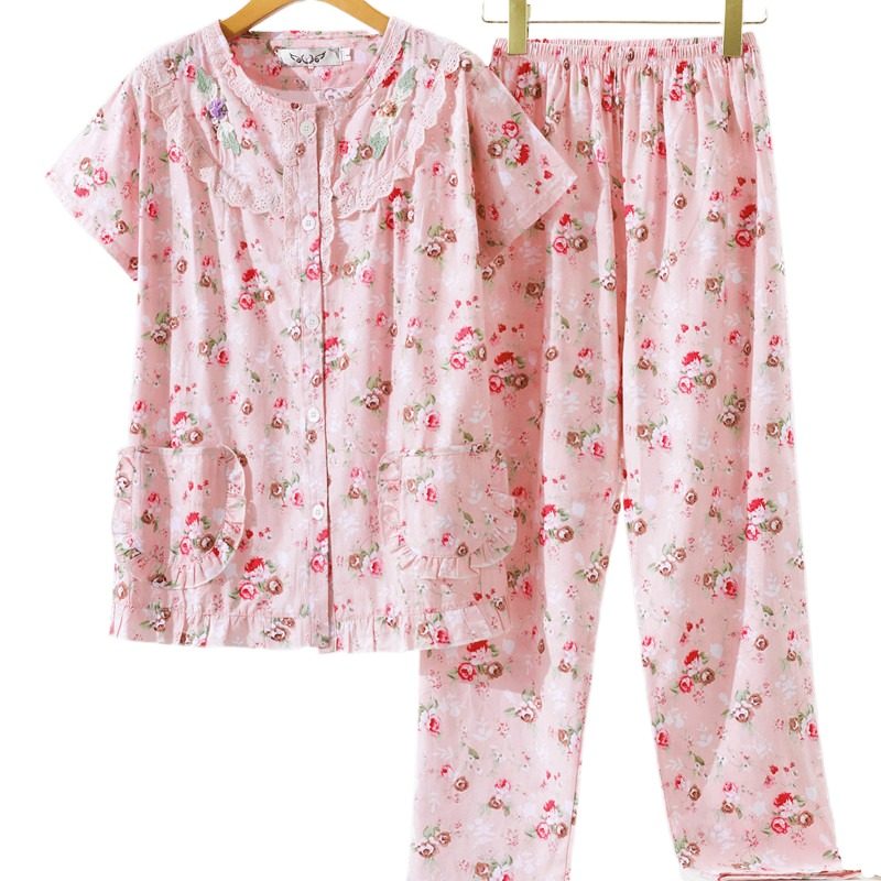 短袖长裤梭织全棉布睡衣家居服