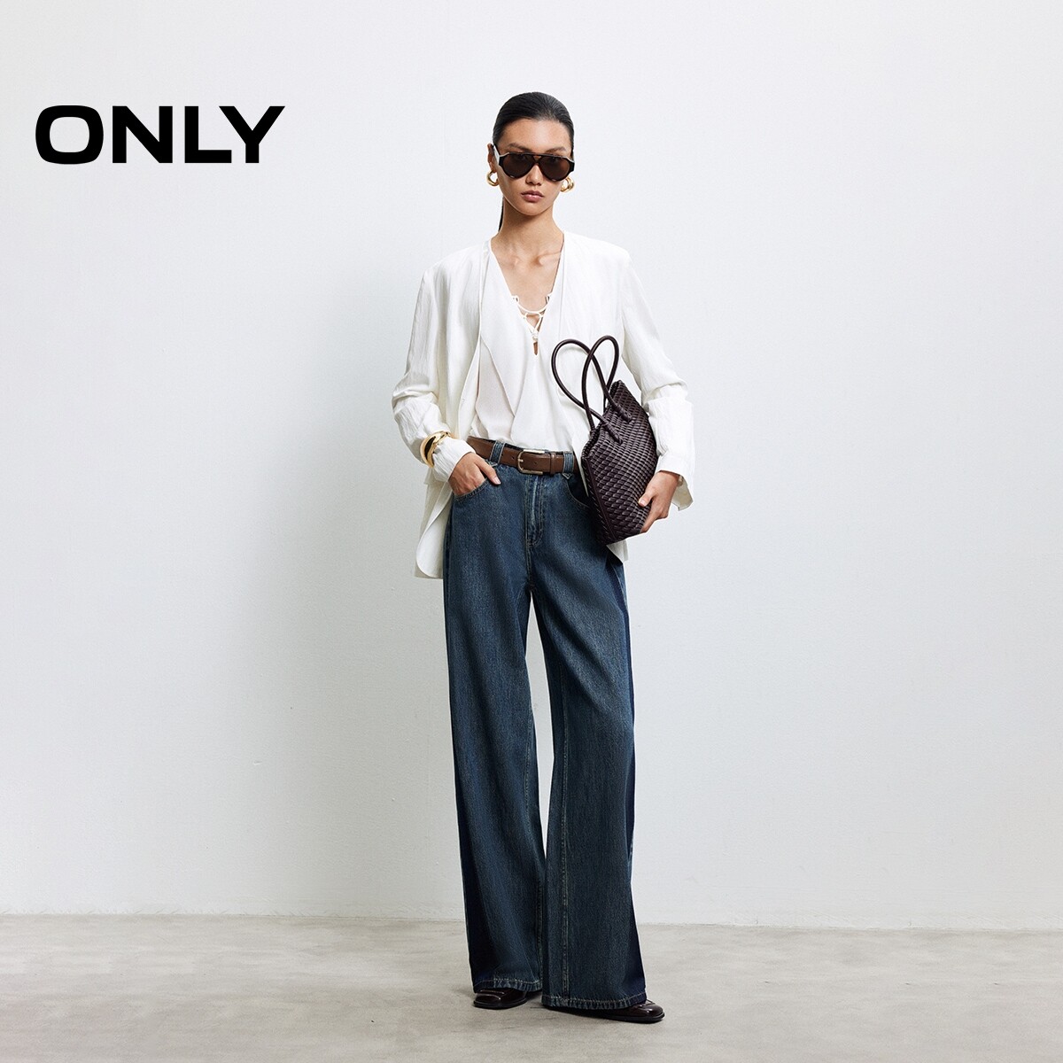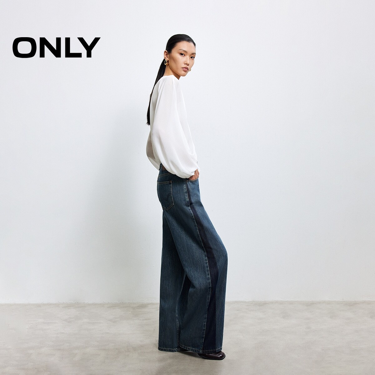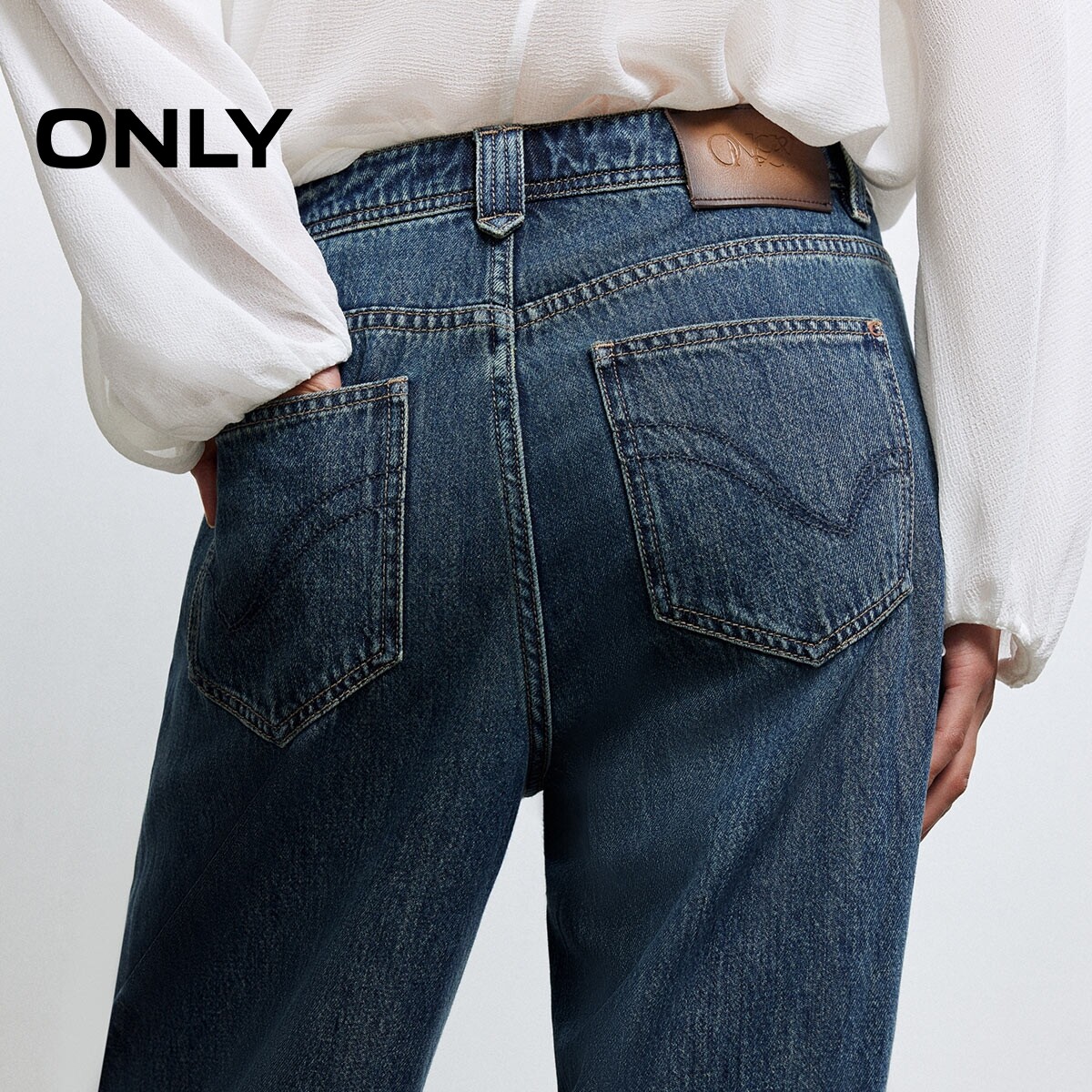 绫致ONLY2025新款时髦个性显瘦水洗宽松直筒裤牛仔裤女