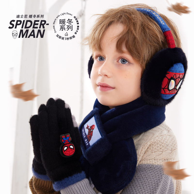 迪士尼儿童耳罩秋冬保暖毛绒耳暖男童耳套男孩护耳宝宝蜘蛛侠耳捂