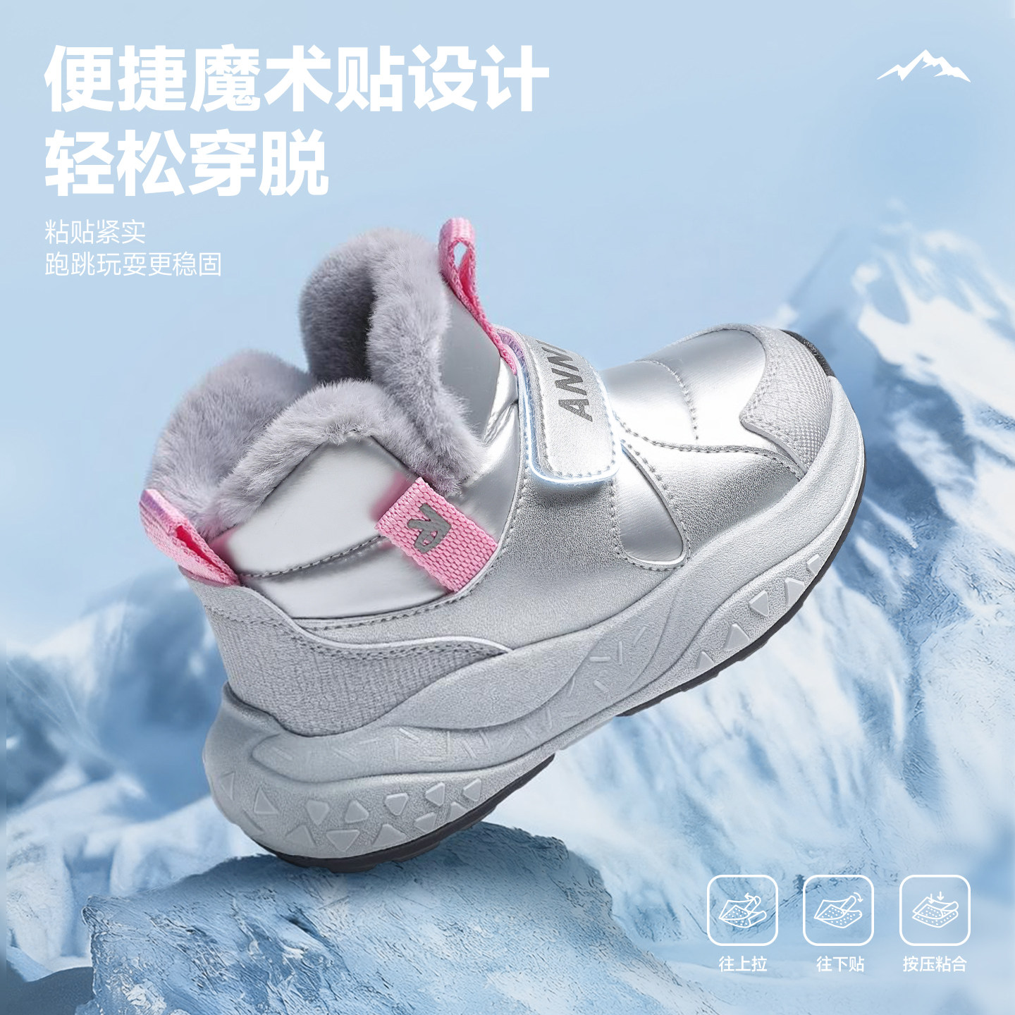 安奈儿女童雪地靴冬季2025新款加厚防水大童女孩加绒鞋子儿童棉鞋