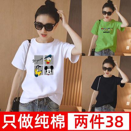 纯棉t恤女短袖女2025年夏季白色米奇宽松韩版学生ins潮黑色上衣服