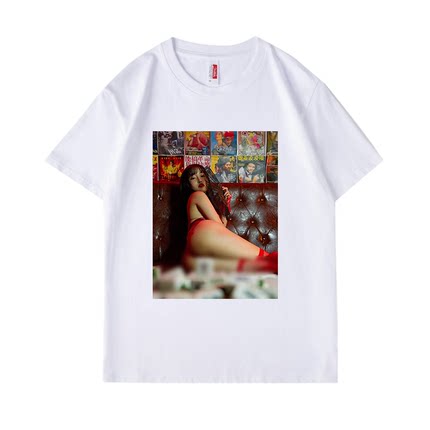 港风美女人像印花小众纯棉潮流短袖打底衫T恤宽松