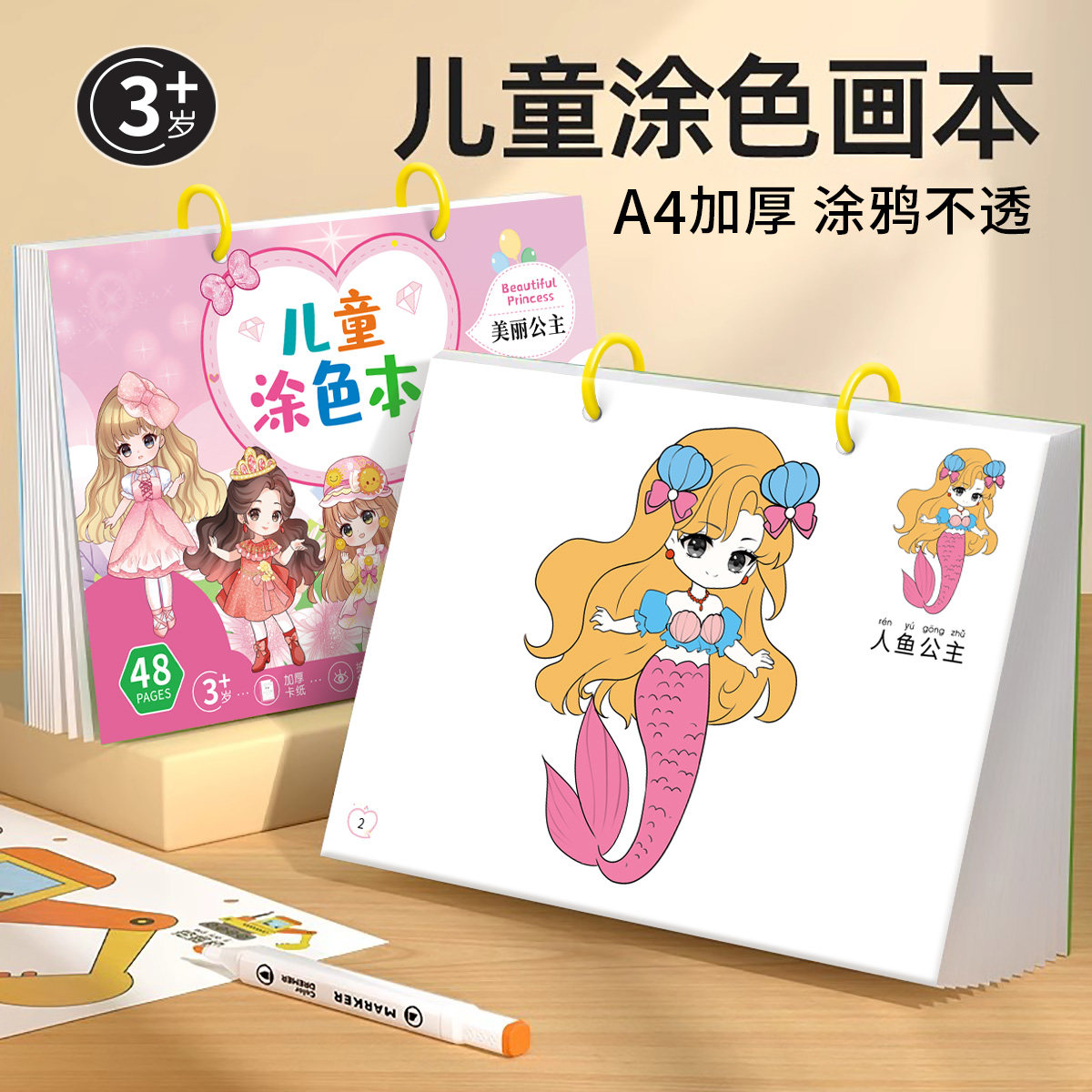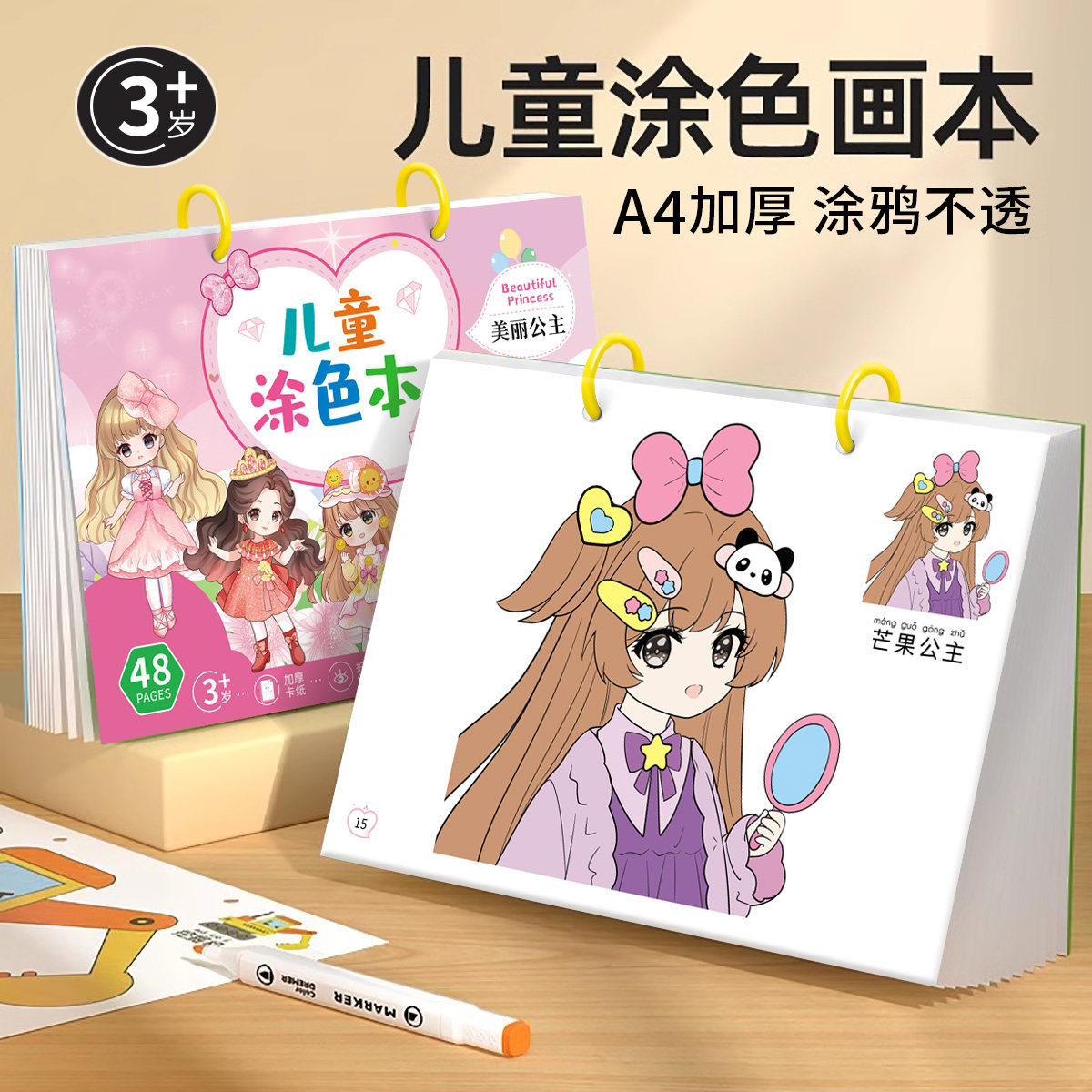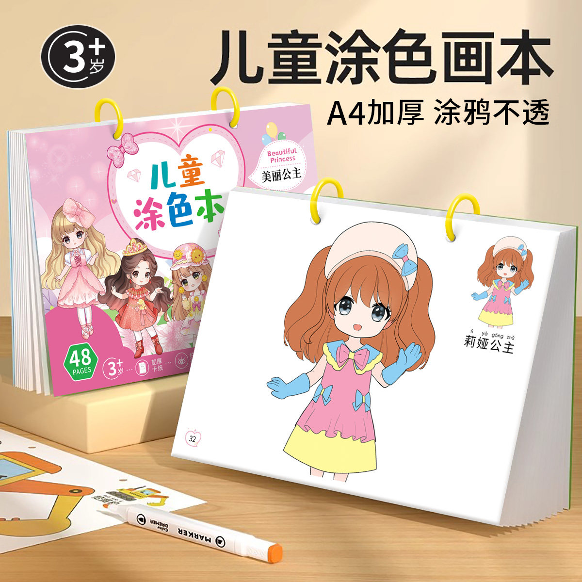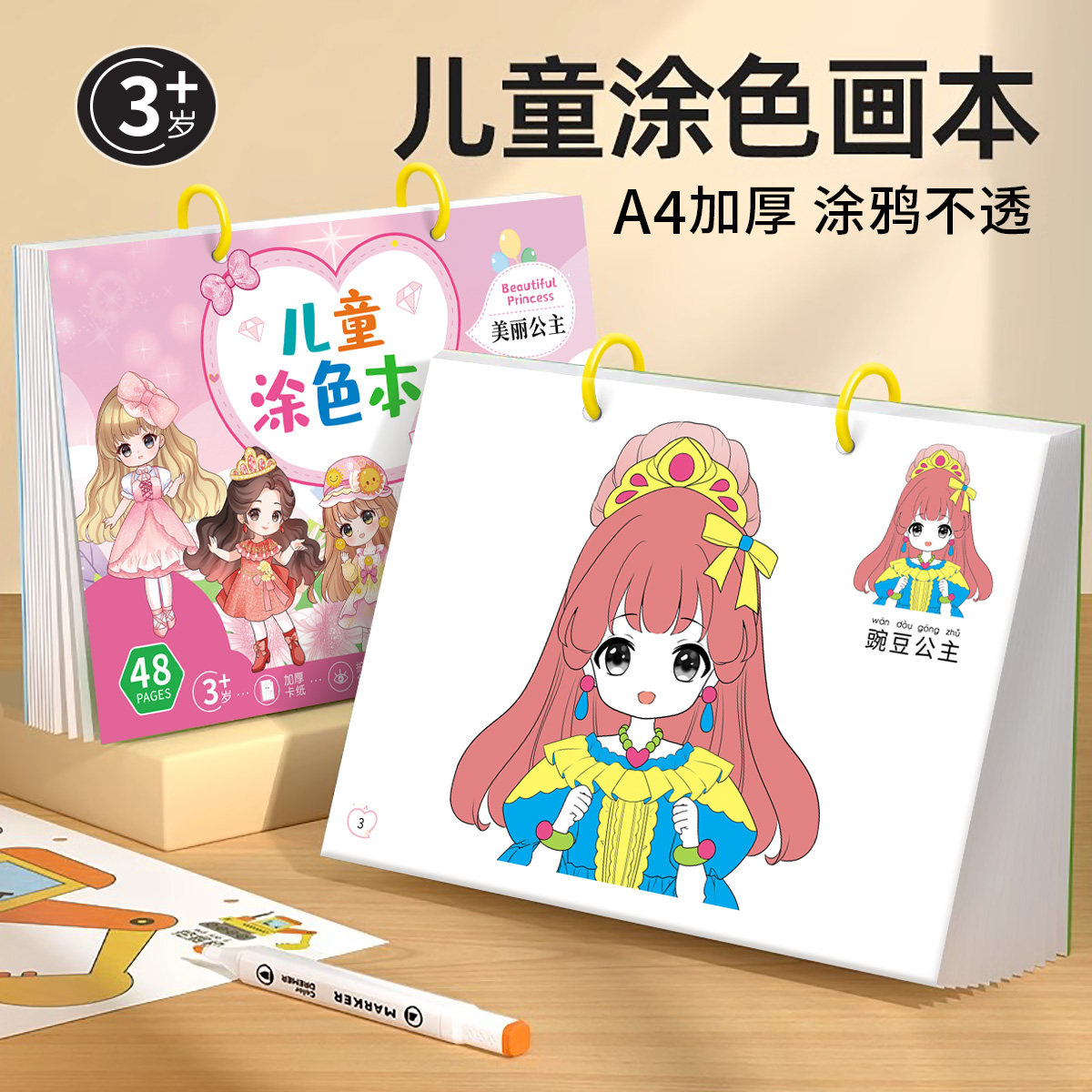 公主炫彩涂色画 公主涂色书儿童幼儿园3-5-6-7-8岁涂颜色绘本宝宝学画画书入门女孩涂色秀百变公主换装秀绘画本幼儿绘画书填色书