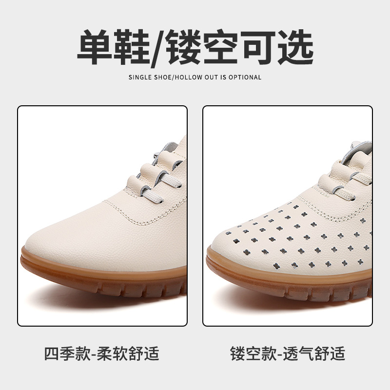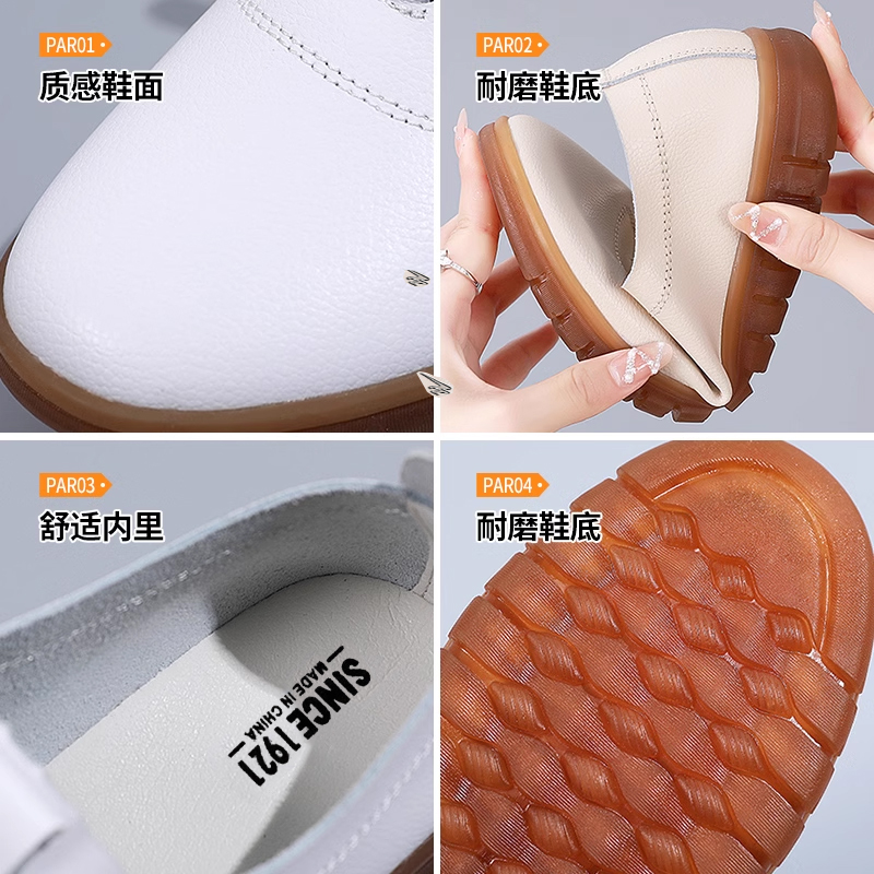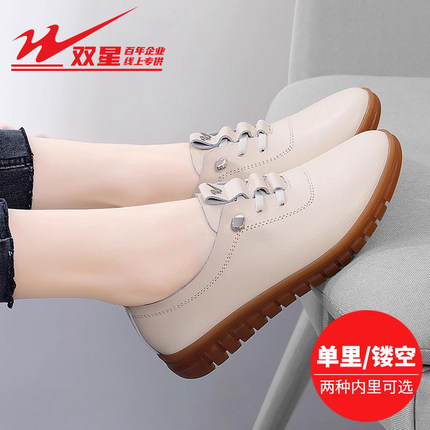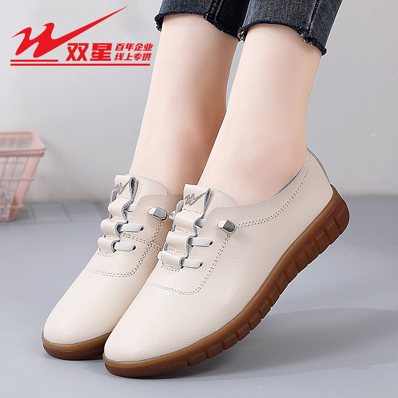 双星女鞋妈妈鞋真皮牛筋底乐福皮鞋平底休闲软底一脚蹬平底单鞋女