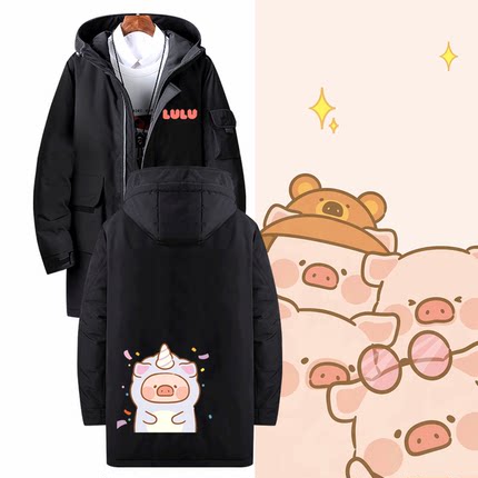 LULU猪卡通粉红小猪印花周边卡通可爱印花男女可定制中长款羽绒服