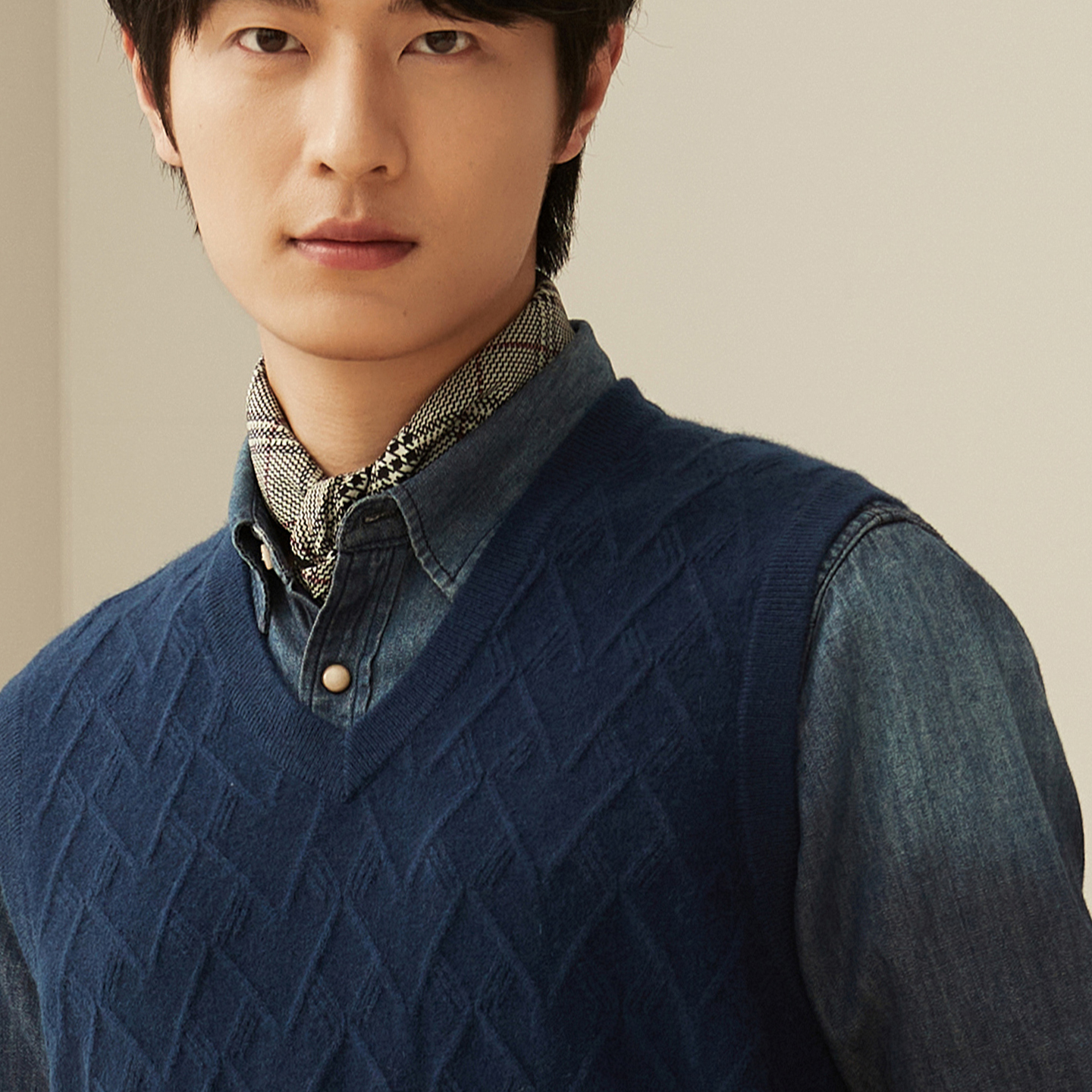 鹿王100%纯山羊绒衫男士领背心商务保暖针织马甲套衫秋冬新款