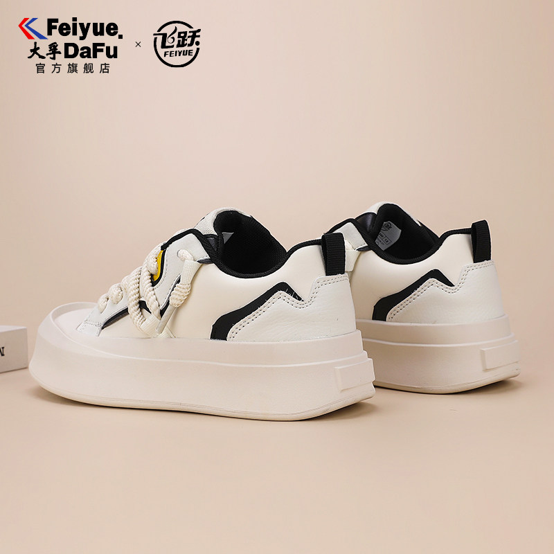 大孚飞跃2025秋冬新款韩版百搭运动鞋米色女鞋厚底板鞋舒适休闲鞋