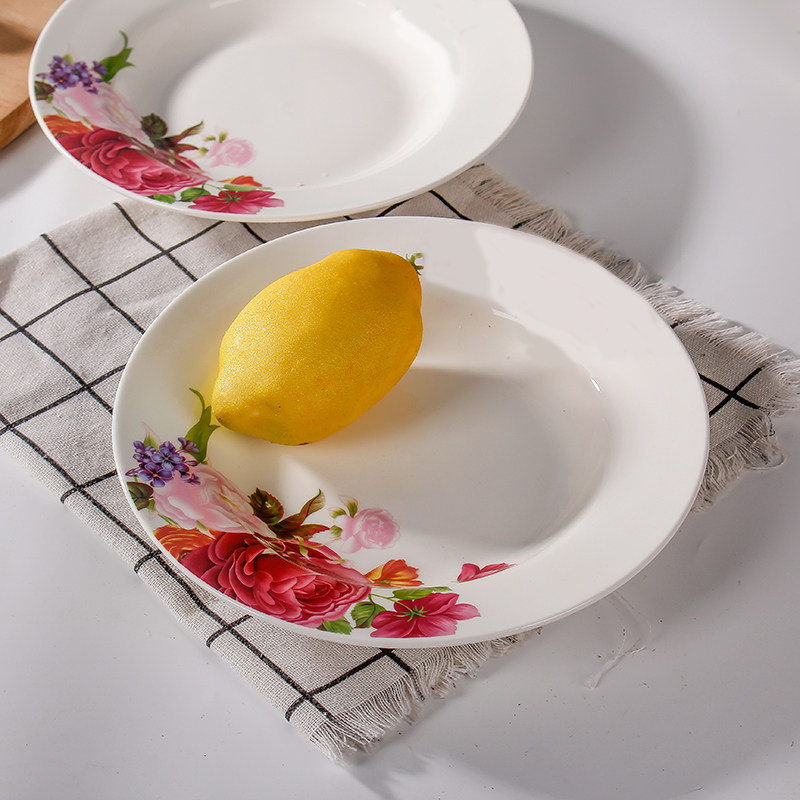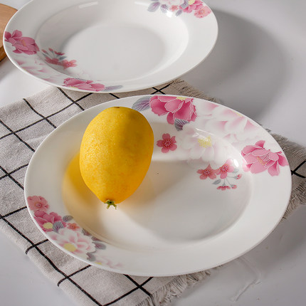 汤盘2只装 家用富贵盘陶瓷汤碟子点心盘创意果盘微波炉烝菜汤汁盘