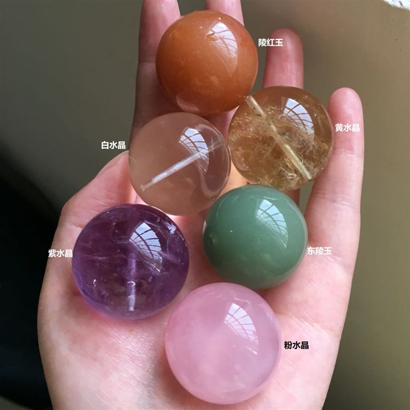 纯天然水晶e球单珠散珠 白水晶 粉水晶紫水晶黄水晶东陵玉绿色25m