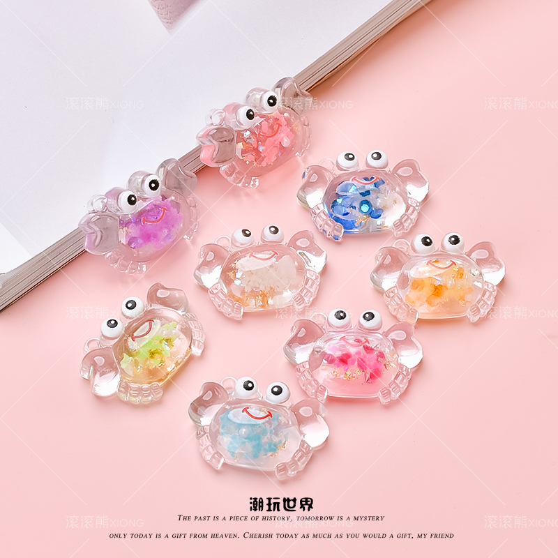可爱夜光小螃蟹diy手工发夹饰品配件钥匙链挂件仿真迷你微缩模型