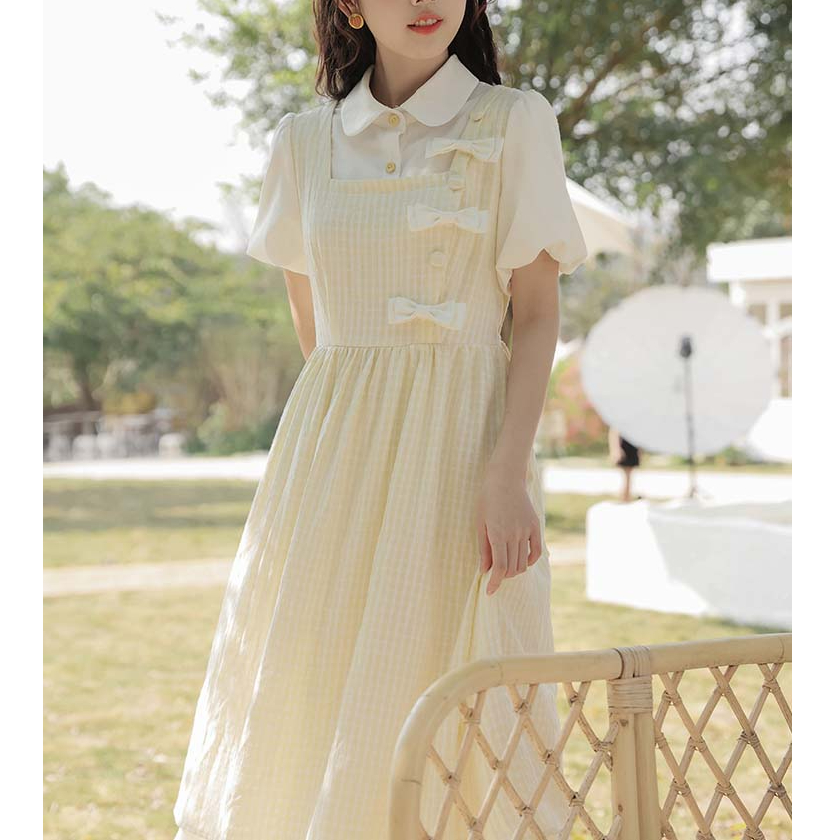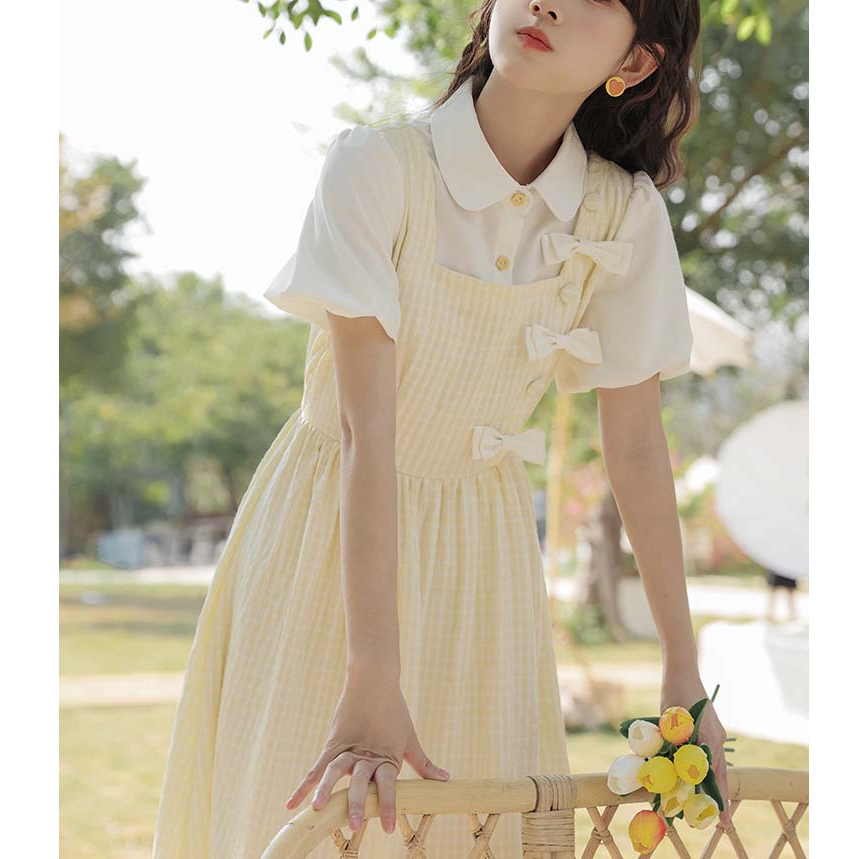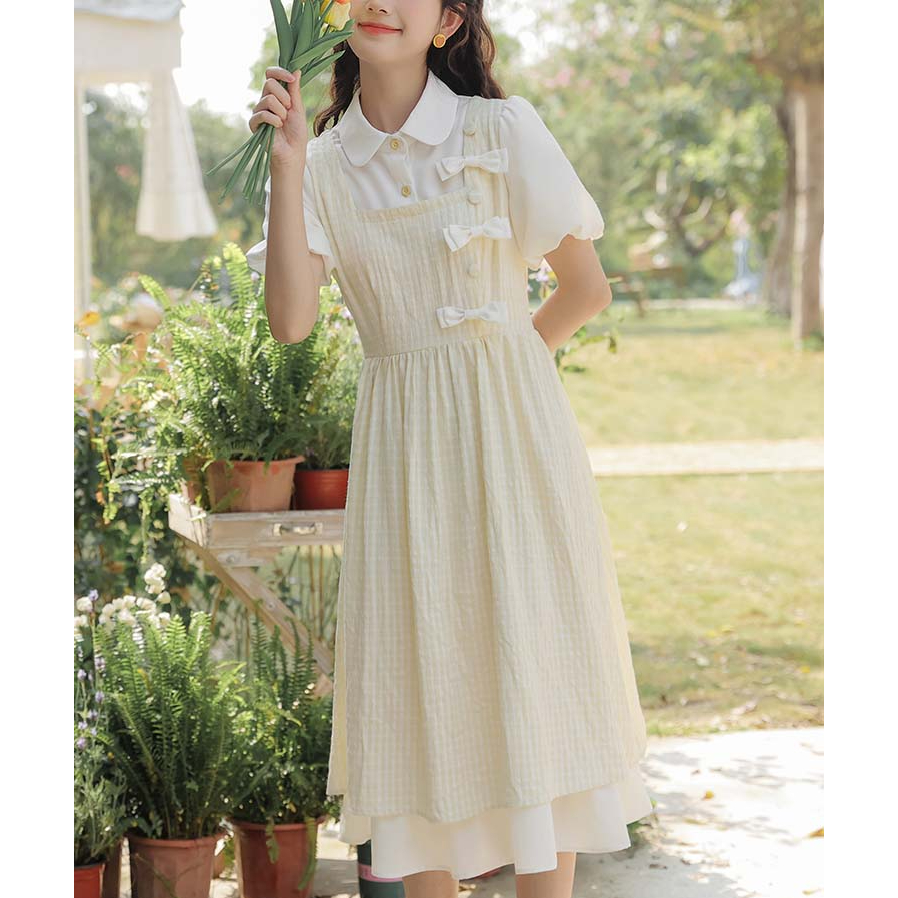 夏季森系甜美假两件连衣裙女2025新款法式小个子奶乖温柔风长裙子