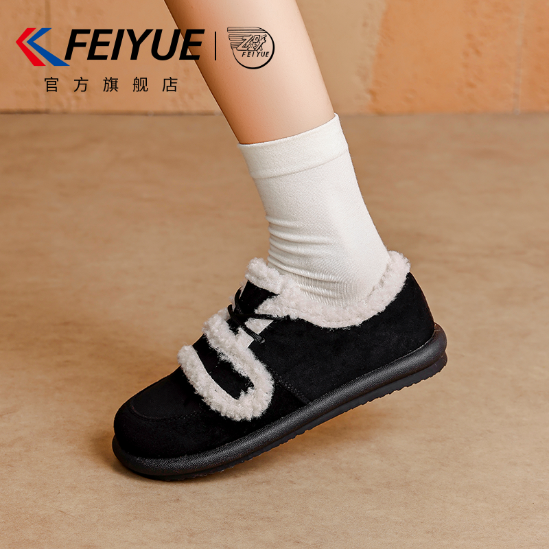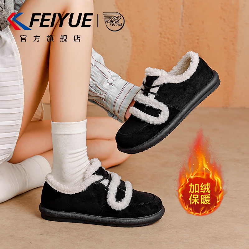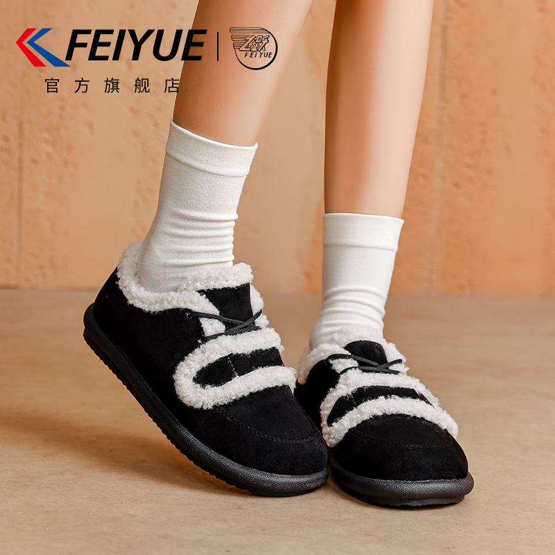 feiyue/飞跃棉鞋女款2025冬季新款保暖羊羔绒勃肯鞋一脚蹬雪地靴