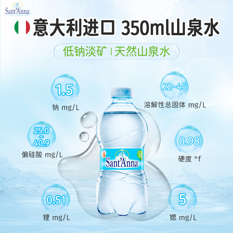 【350ml户外便携】意大利进口天然泉水天然水饮用水低钠淡矿泉水