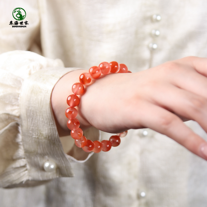 南红手串女男东海水晶玉髓翡翠玉石散珠子文玩盘玩冰飘红玛瑙手链