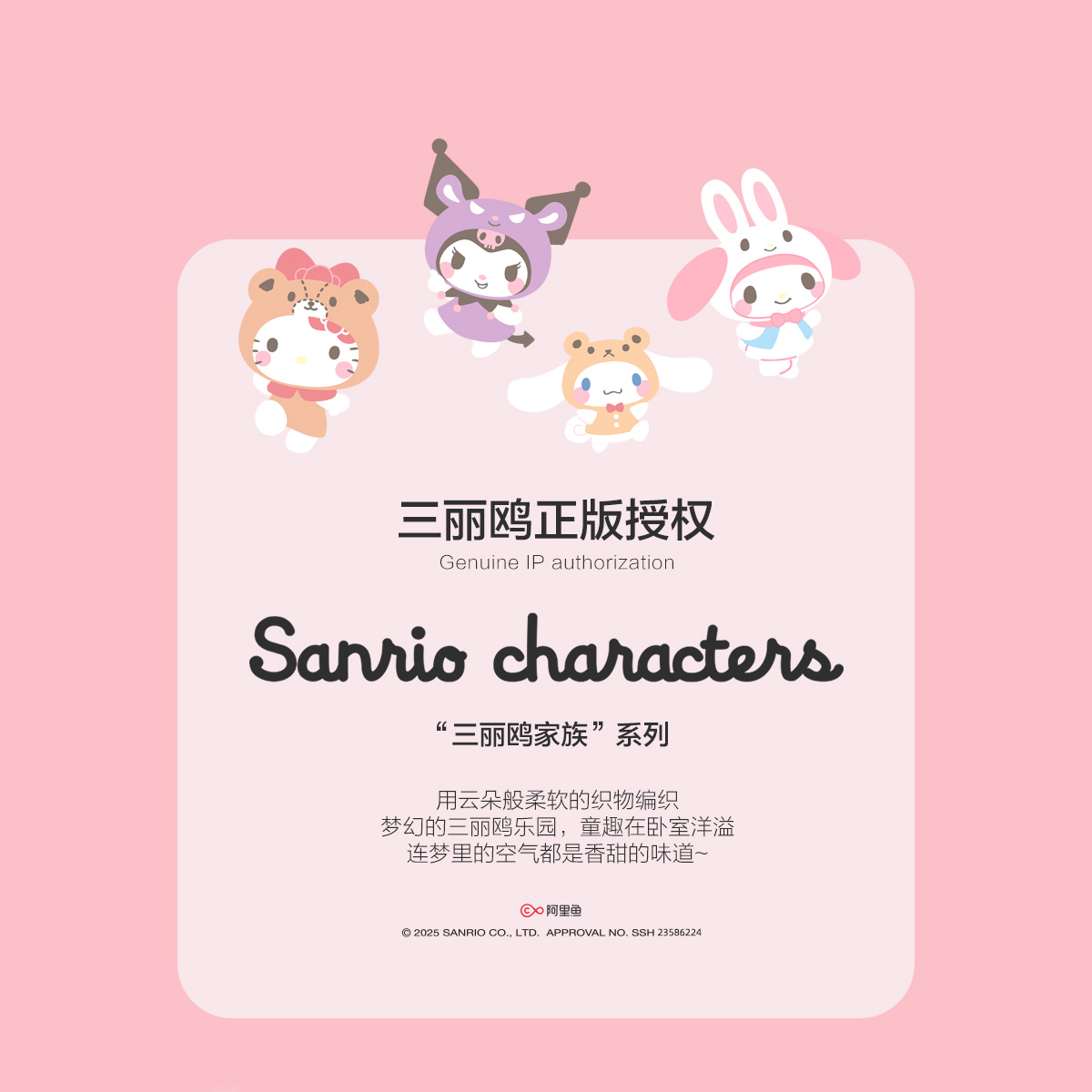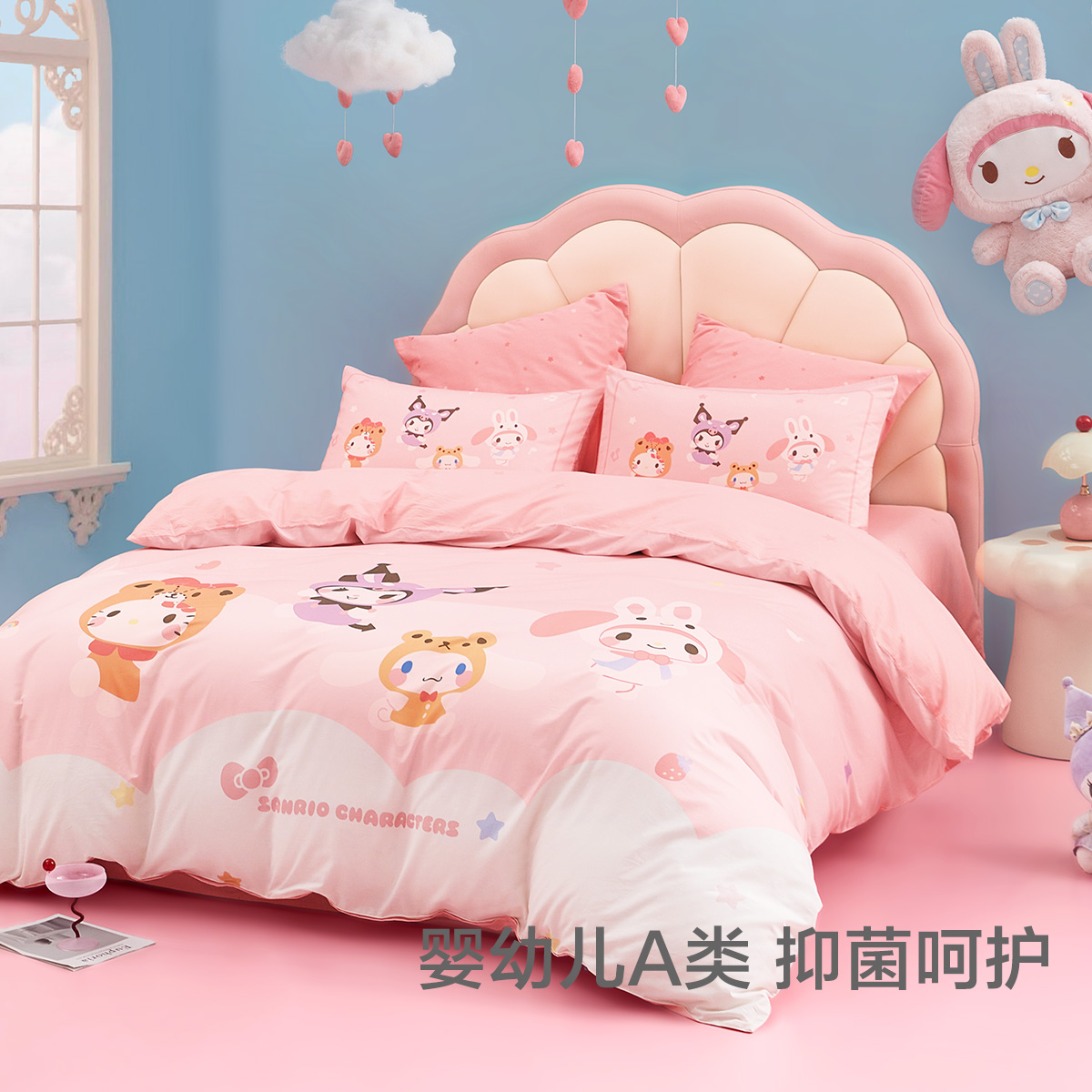 水星家纺全棉套件母婴A类抑菌儿童四件套卡通三丽鸥被套床单床品