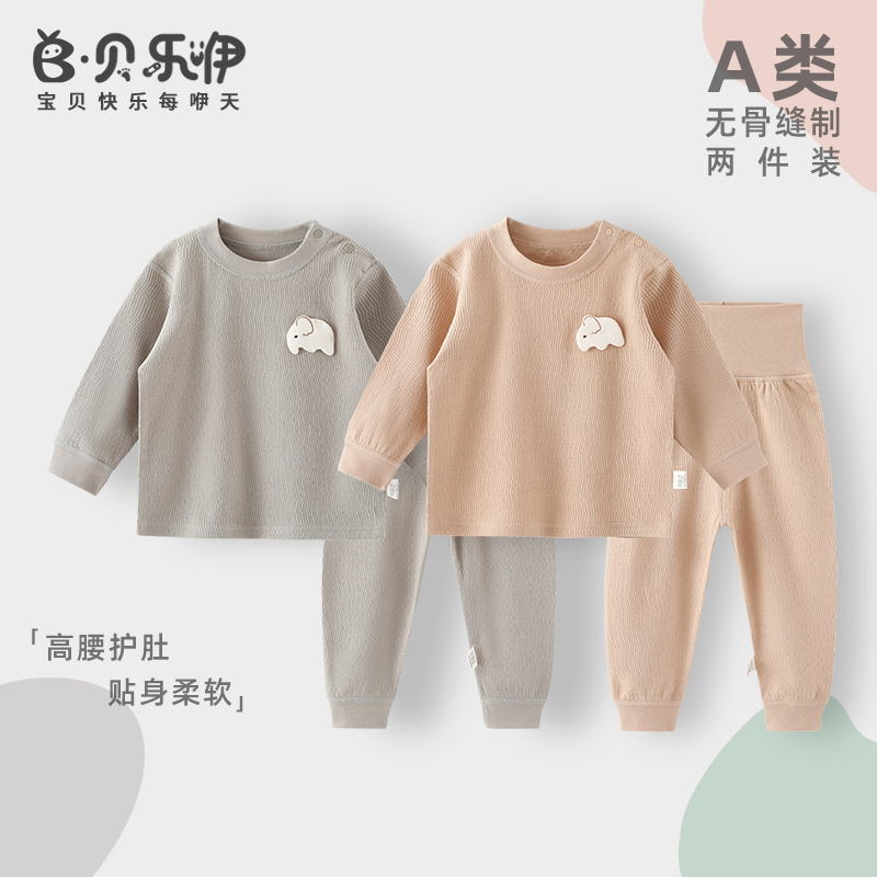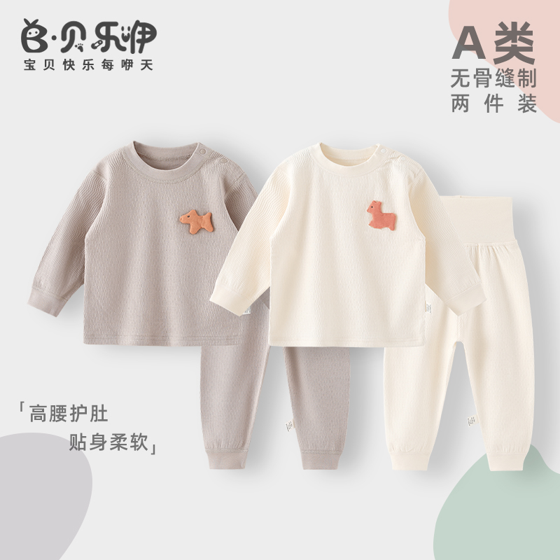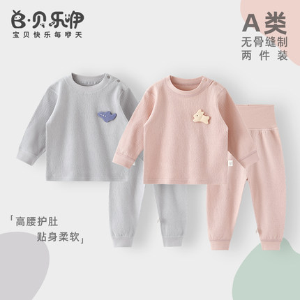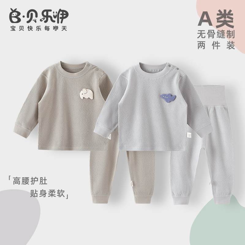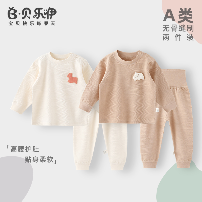 贝乐咿婴儿内衣套装春秋纯棉睡衣高腰无骨家居服儿童秋衣秋裤护肚