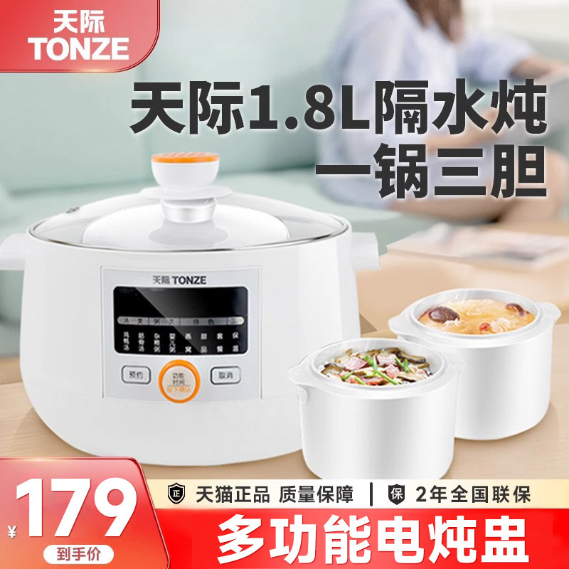 天际隔水炖电炖锅电炖盅2人3炖汤燕窝家用陶瓷内胆一锅三胆电升锅