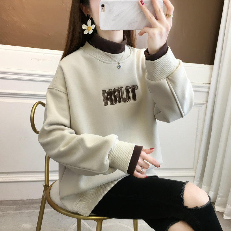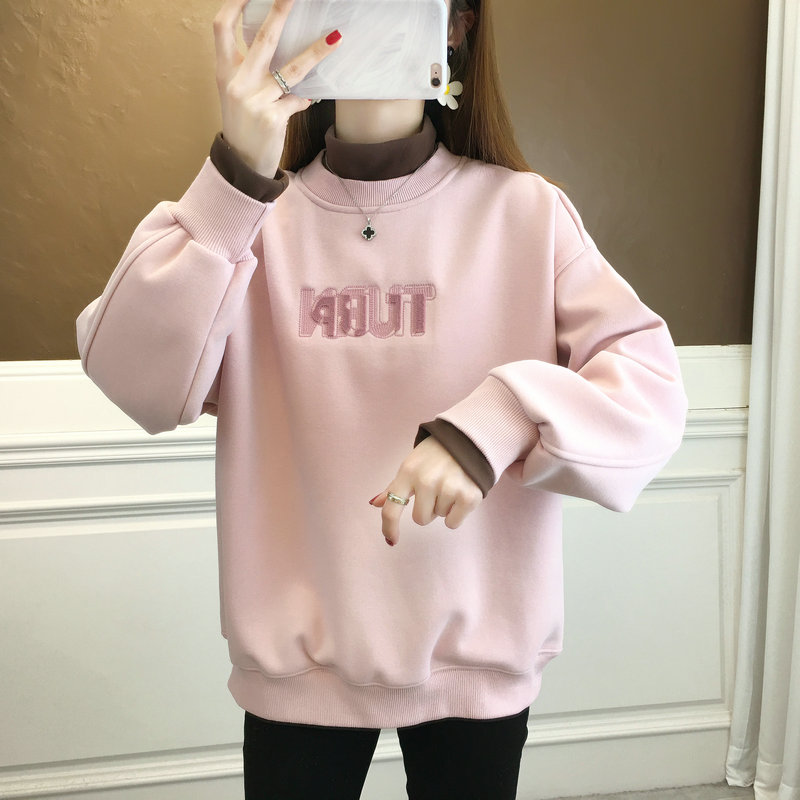 半高领卫衣女秋冬季韩版宽松加绒加厚百搭学生保暖假两件上衣外套